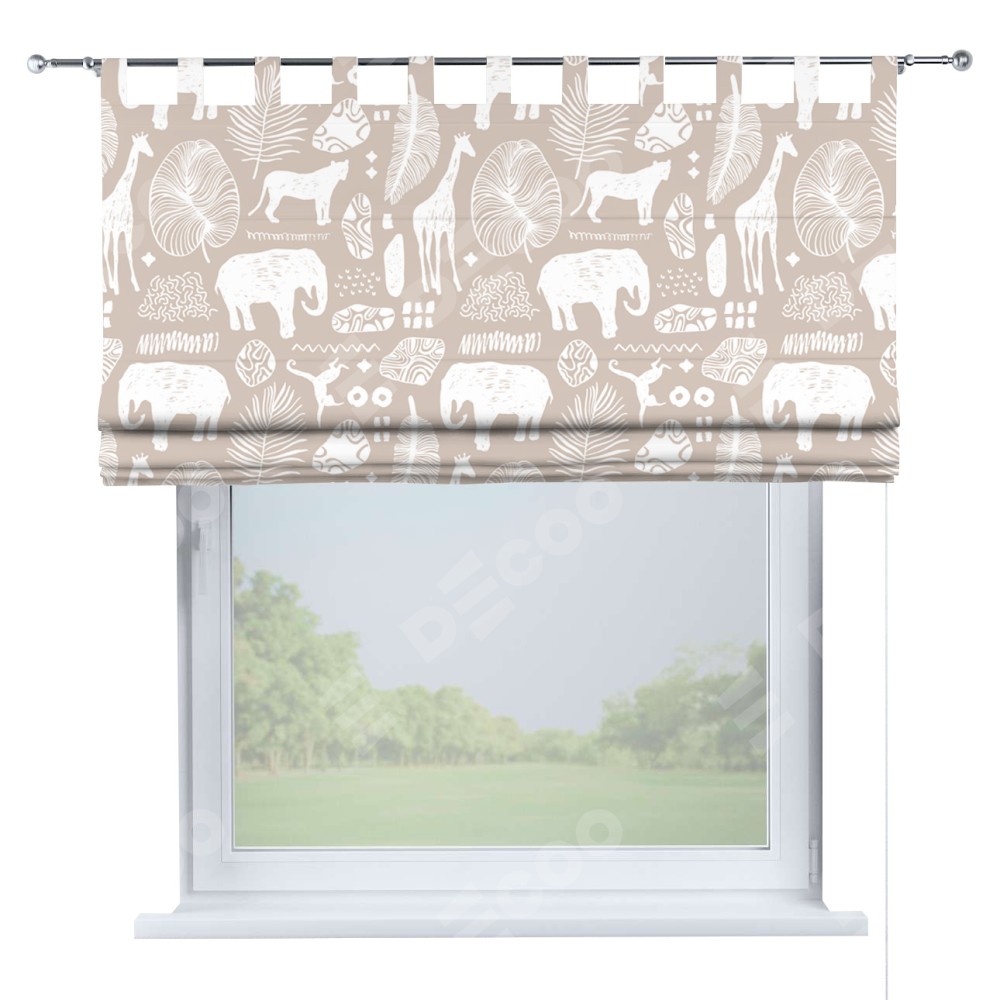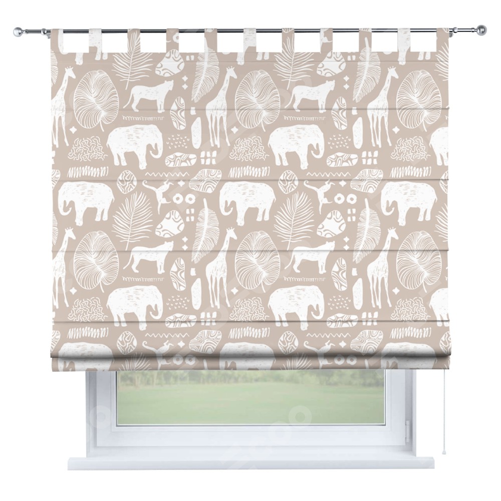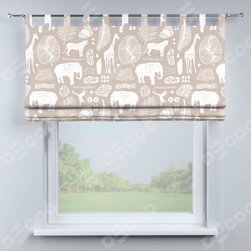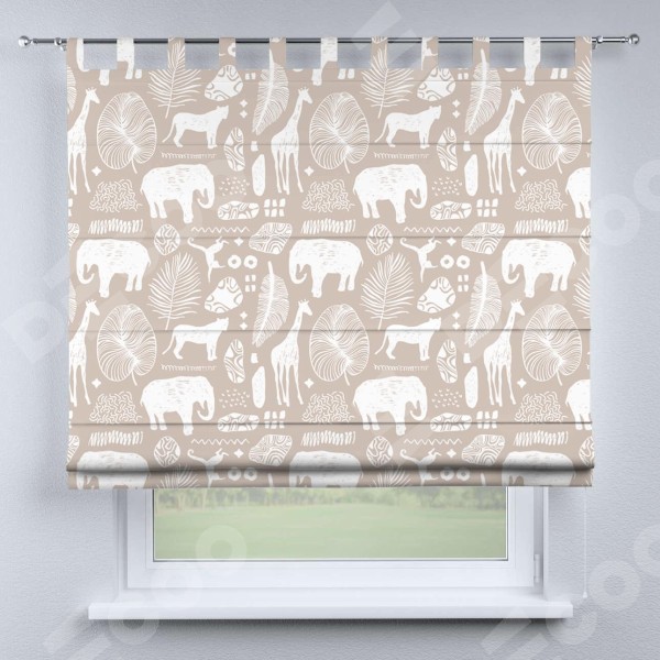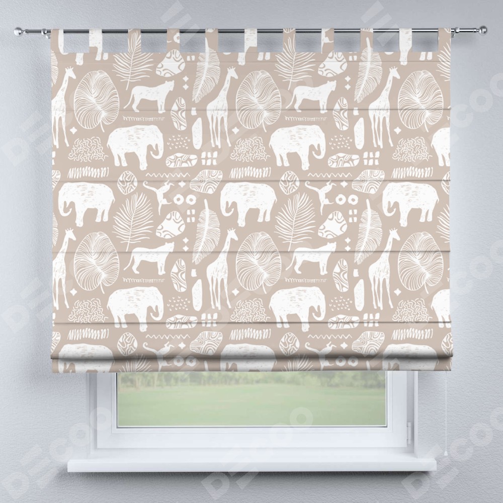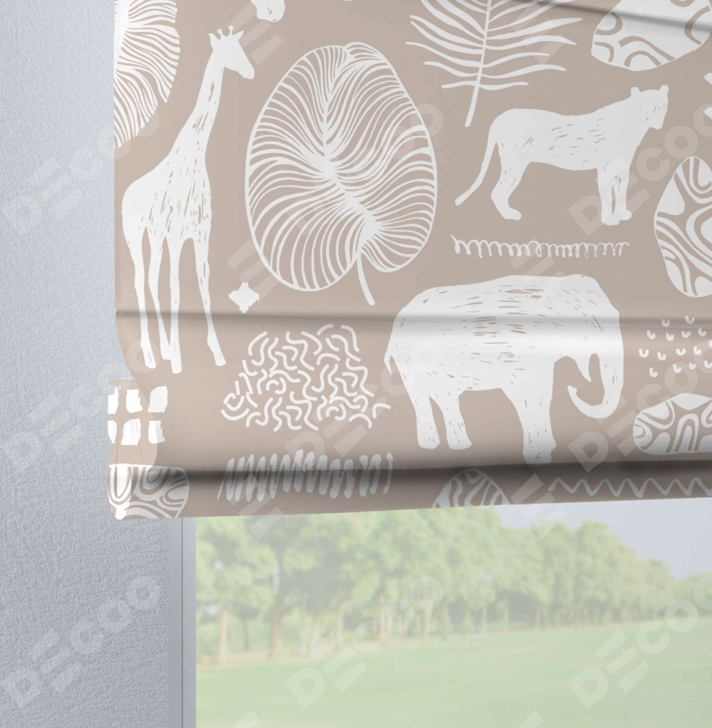 Римская штора производителя «Cortin», используется для проёма, пошита из ткани блэкаут с нанесением сублимационной печати «Африканские животные». Данная модель пошита на петлях, комплектуется на выбор круглым карнизом и подходит для монтажа на стену. Римская штора на петлях имеет простую систему регулировки высоты, отличительным преимуществом данной модели является простой способ монтажа. Достаточно повесить ее на трубу и штора готова!