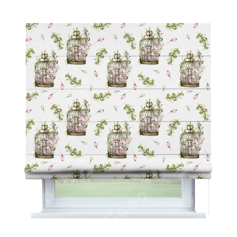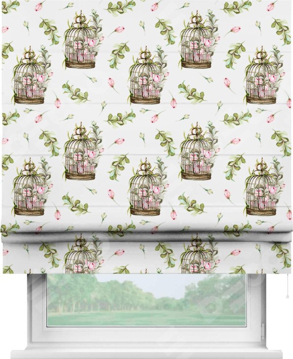 Классическая римская штора представляет собой полотно прикрепленное к карнизу, с обратной стороны полотна вшиты планки. С их помощь при сборе шторы образуются красивые горизонтальные складки.
