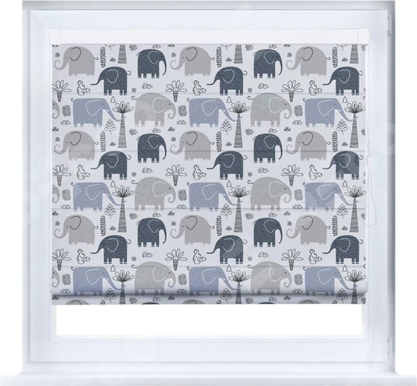 Римская штора производителя «Cortin», устанавливается на створку окна, пошита из ткани блэкаут с нанесением сублимационной печати «Серые слоники». Штора шьётся по индивидуальным размерам, для данного типа римской шторы возможная ширина от 35 до 150 см., высота до 250 см.