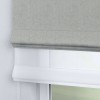 Римская штора день-ночь производителя «Cortin», используется для проёма, пошита из двух полотен, с лицевой стороны твид блэкаут коричнево-серый артикул 21574, вторая ткань тюль (по стандарту комплектуется тюль белого цвета артикул V-01). Имеет универсальный механизм и подходит для монтажа: на потолок, на стену и в нишу.
