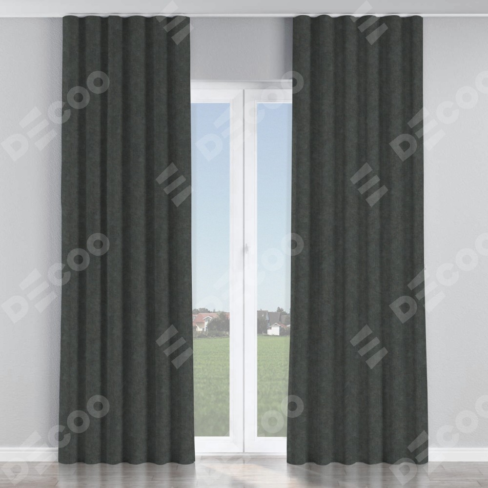 Комплект прямых штор, от производителя «Cortin», пошиты из ткани вельвет тёмно-серый, артикул ткани 33811. С изнаночной стороны в верхней части штор пристрачивается шторная лента с декоративными складками «Волна». Для создания элегантных складок прямые шторы шьются по стандарту с коэффициентом 1:2 (на 100 см. ширины проёма 200 см. ширины ткани).