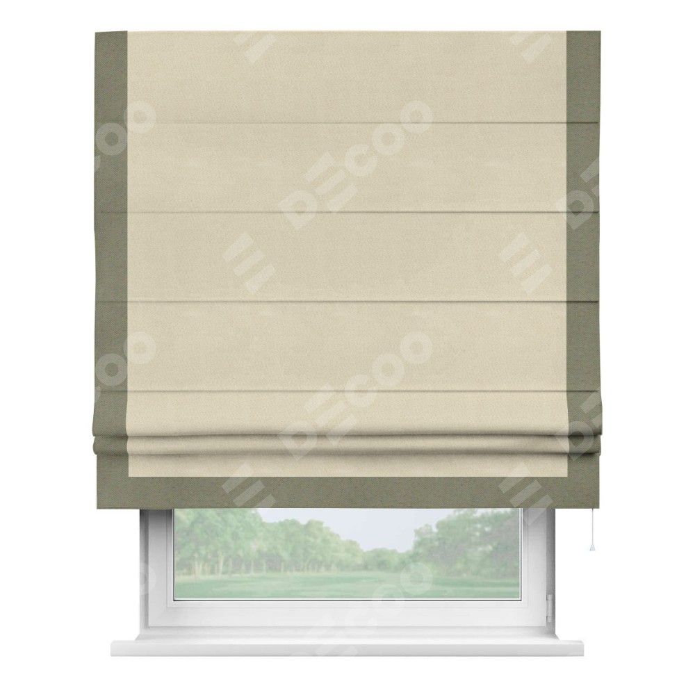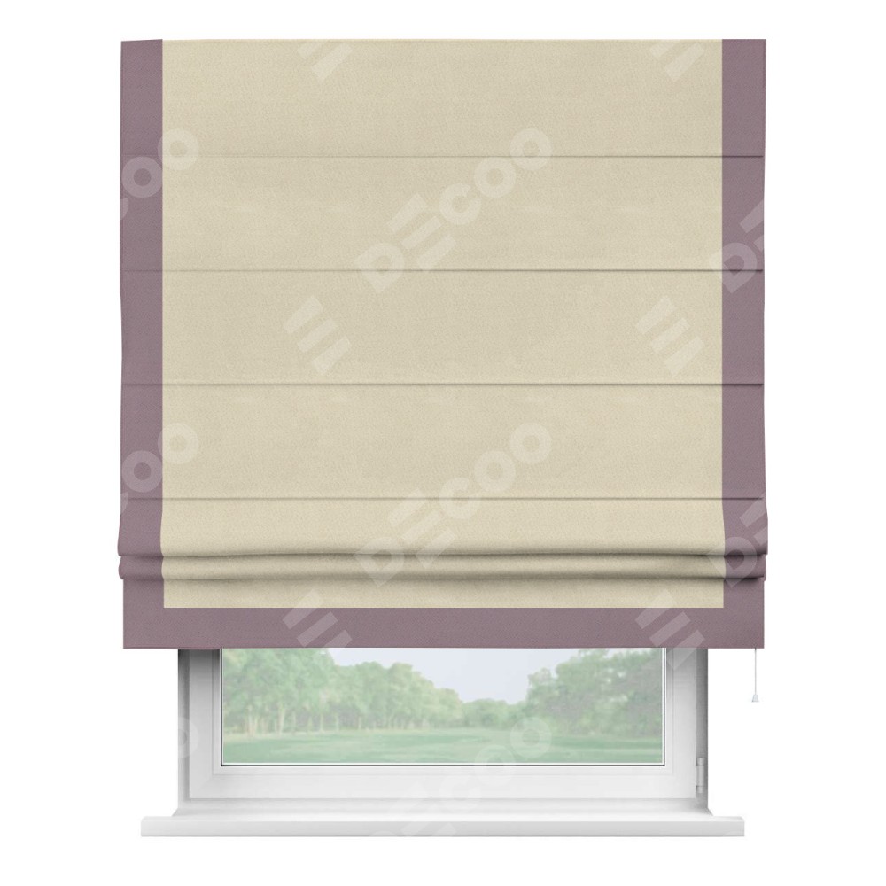 Римская штора производителя «Cortin», используется для проёма, пошита из ткани блэкаут однотонный бежевый, артикул ткани 13125. Отделка шторы кантом «Виктория», ткань для канта используется из блэкаута однотонного разной расцветки на выбор. Имеет универсальный механизм и подходит для монтажа: на потолок, на стену и в нишу.