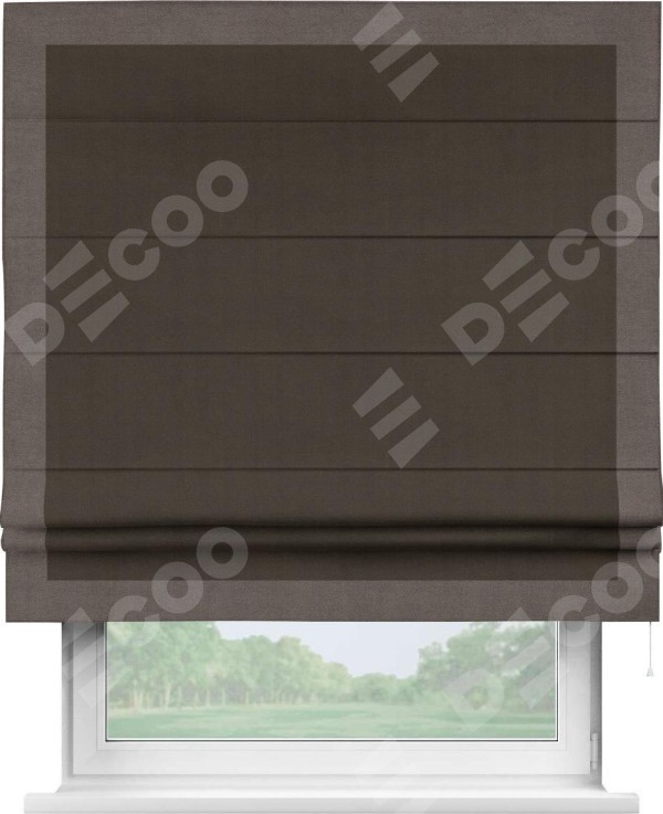 Римская штора «Кортин» с кантом Чесс, для проема, ткань вельвет тёмно-коричневый
