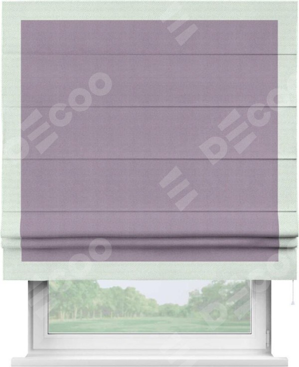Римская штора «Кортин» с кантом Чесс, для проема, ткань блэкаут однотонный светло-сиреневый