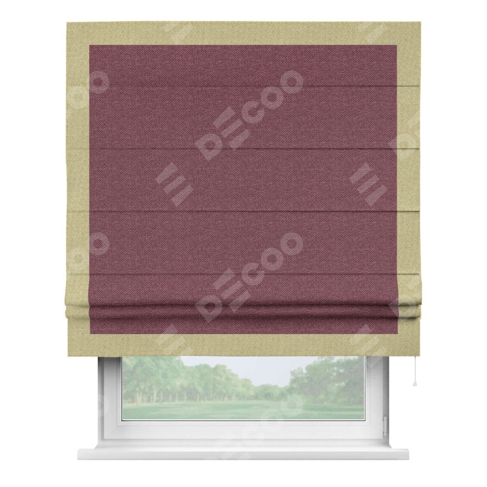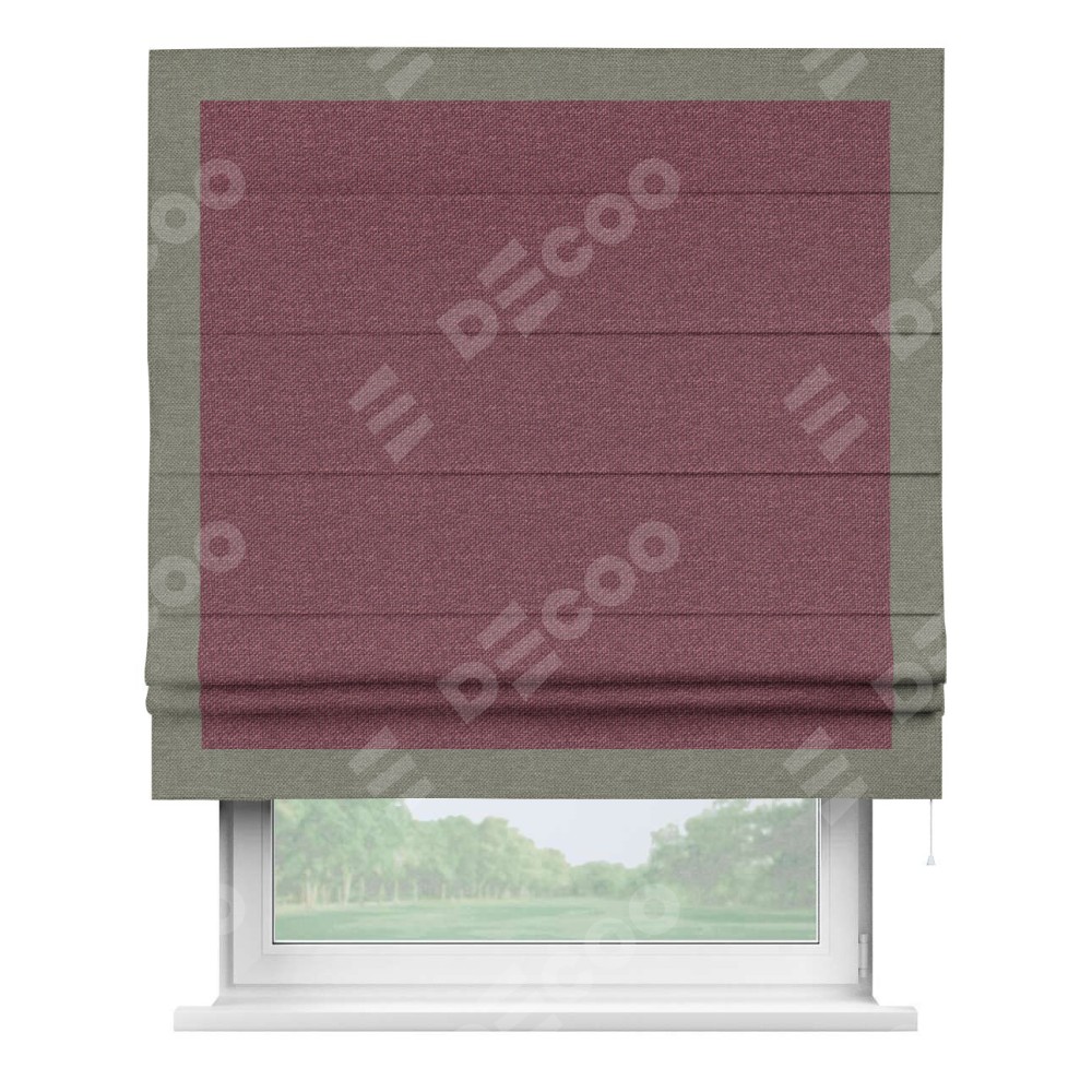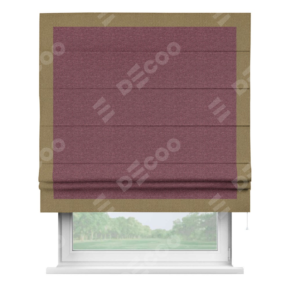 Римская штора «Кортин» с кантом Чесс, для проема, ткань лён димаут, марсала