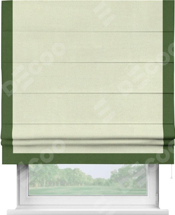 Римская штора «Кортин» с кантом Виктория, для проема, ткань блэкаут однотонный сливочный
