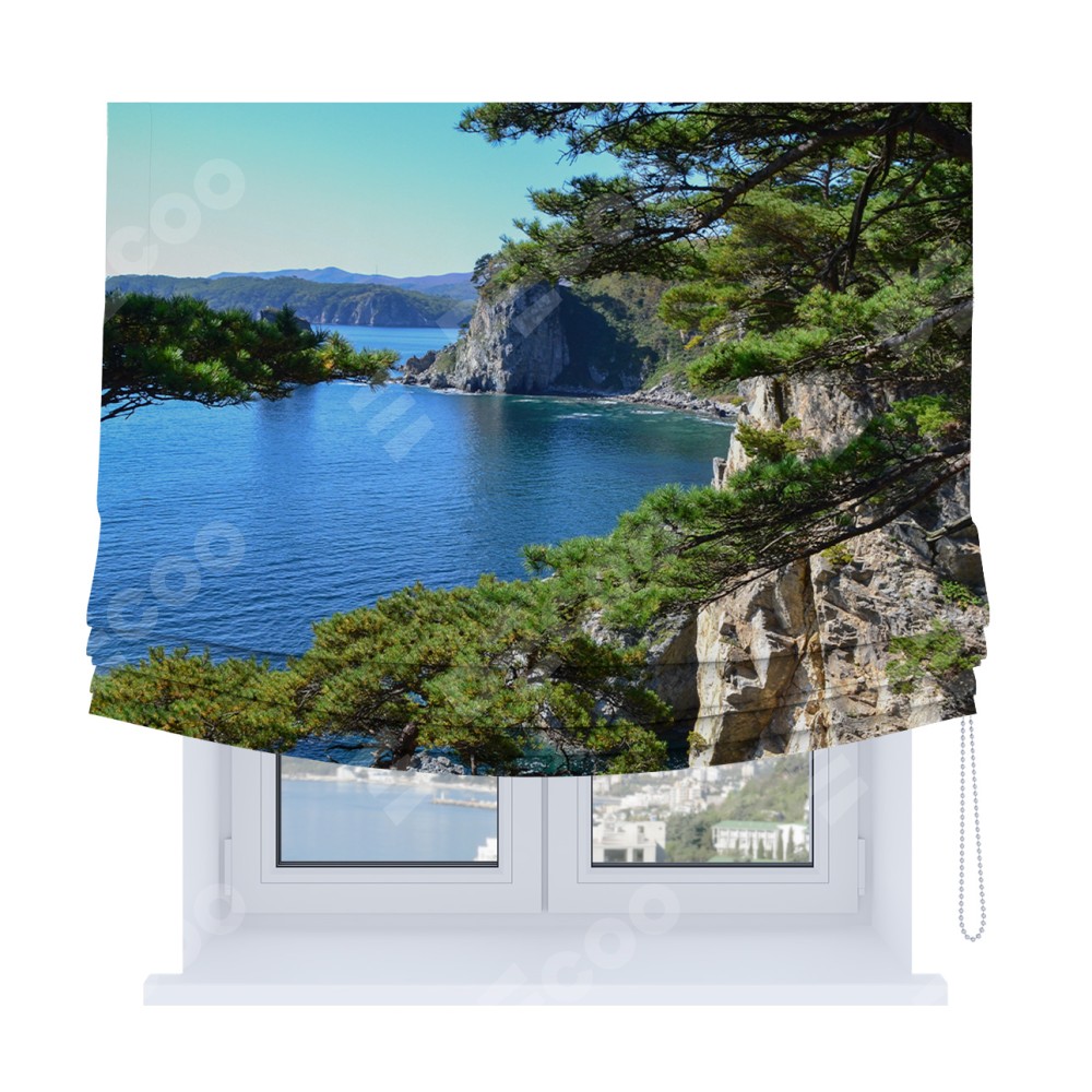 Римская штора Soft с мягкими складками, «Море и сосны»