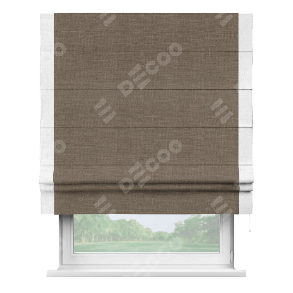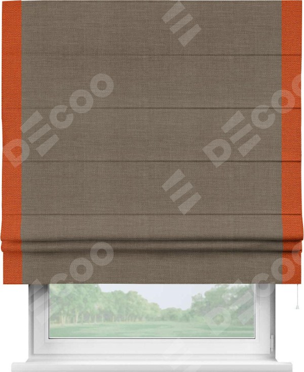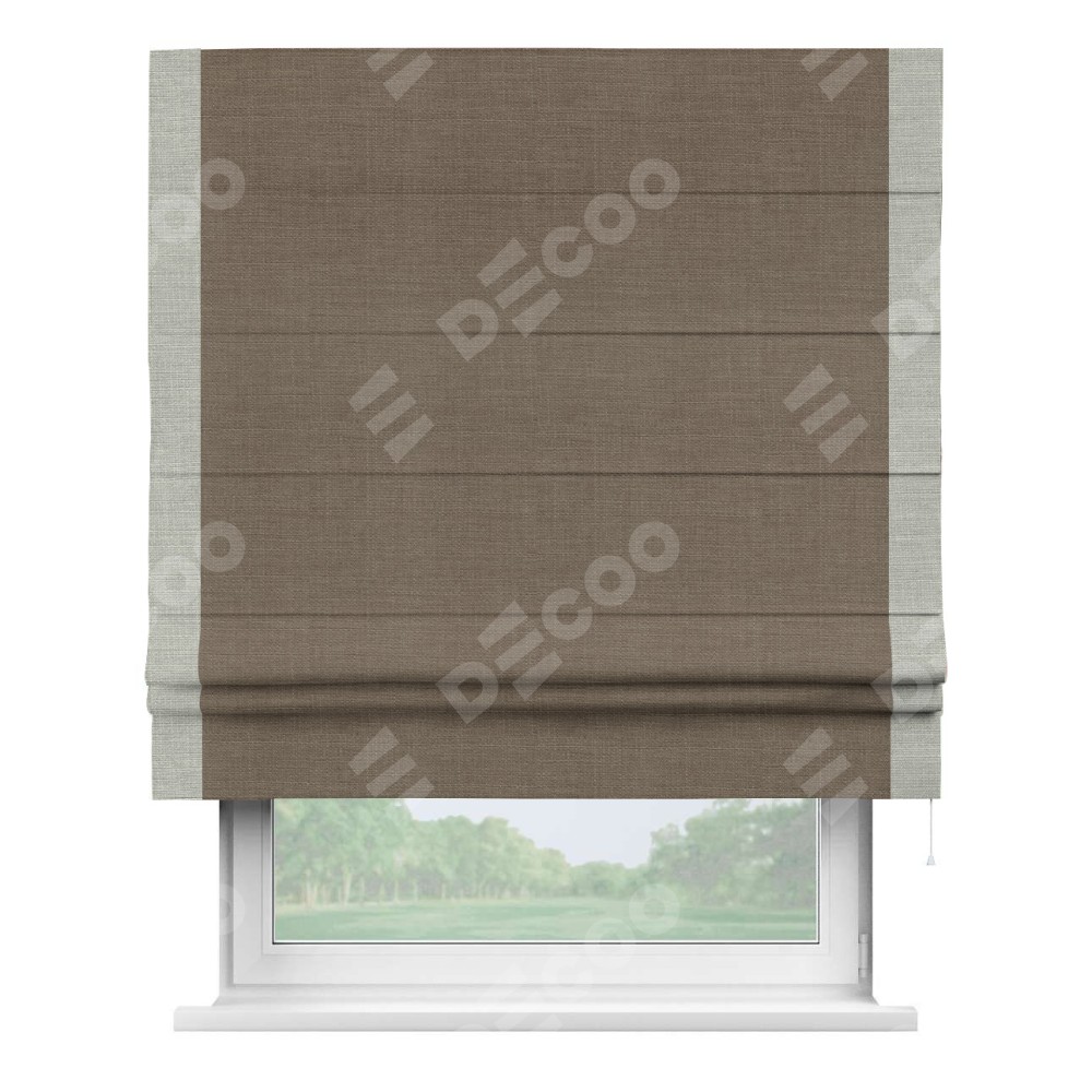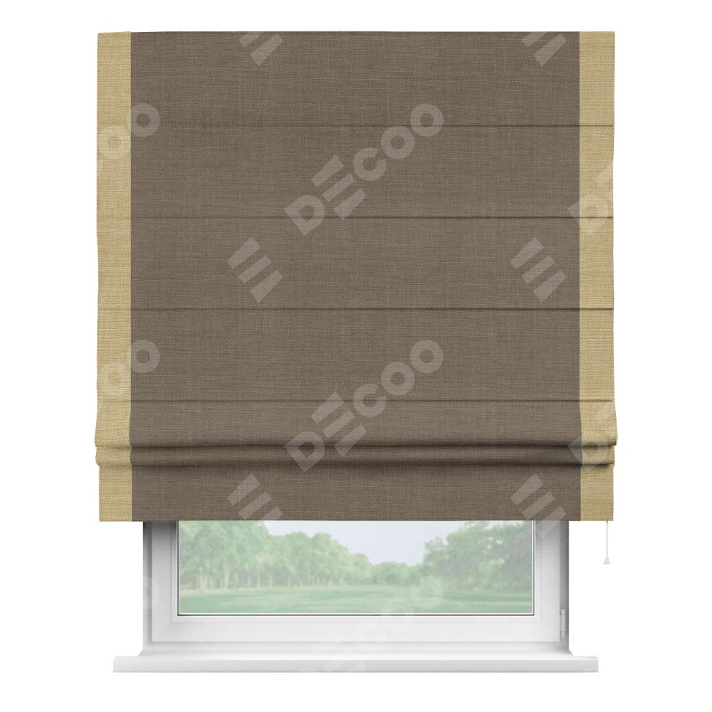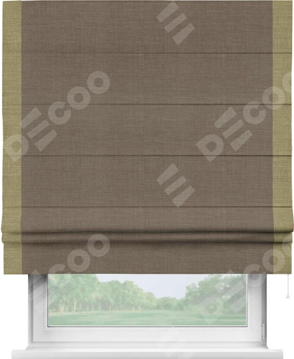 Римская штора «Кортин» с кантом Стрим Дуо, для проема, ткань лён мокко
