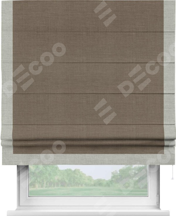 Римская штора «Кортин» с кантом Виктория, для проема, ткань лён мокко