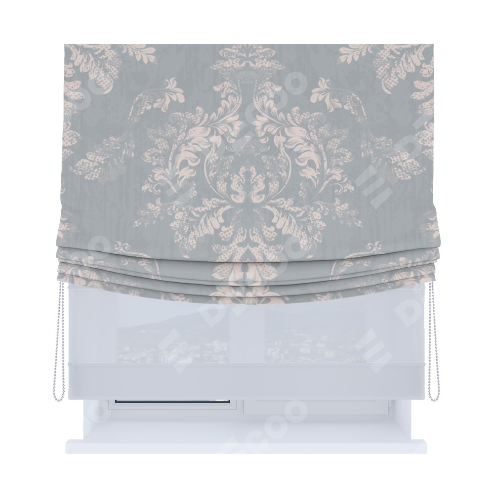 Римская штора «Кортин», день-ночь с мягкими складками, «Винтажный узор серый»