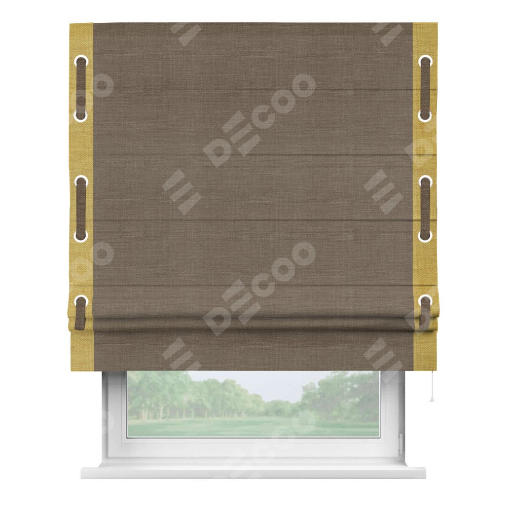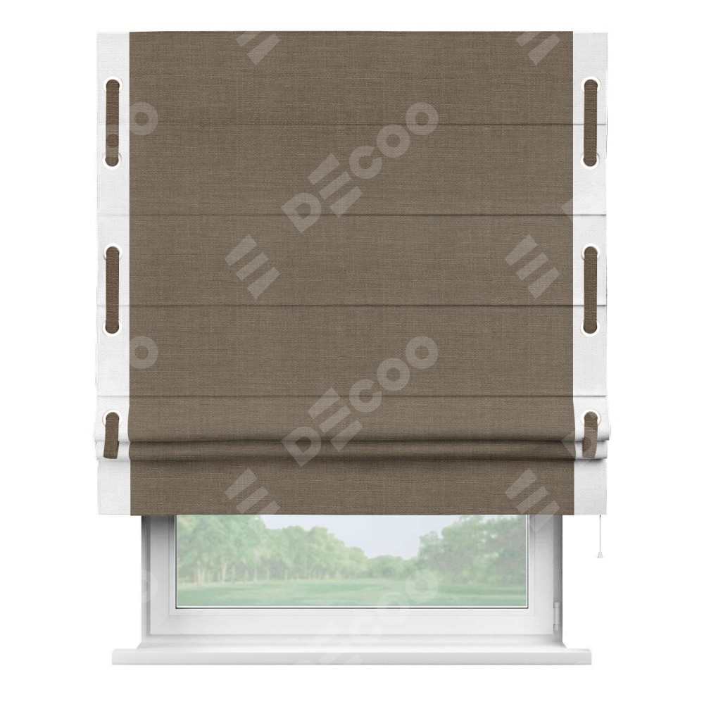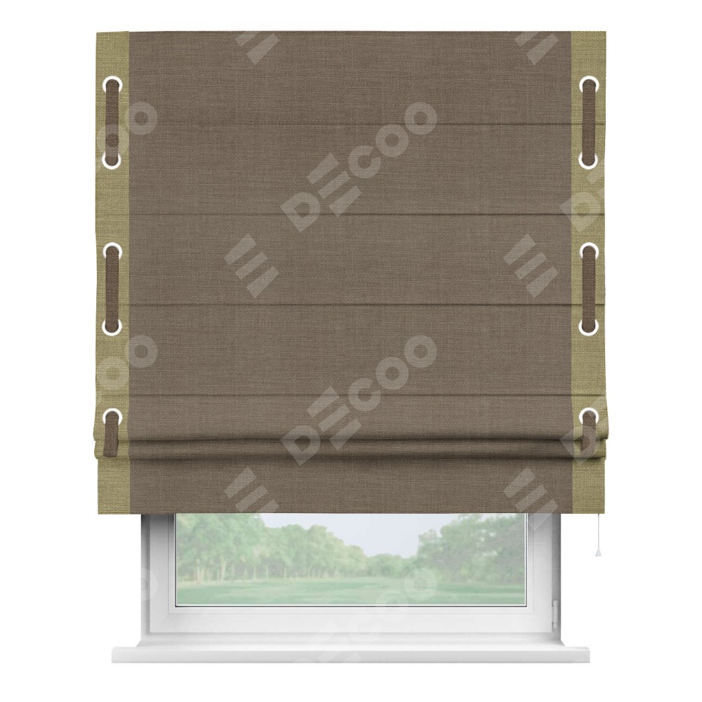 Римская штора «Кортин» с кантом Стрим Дуо (люверсы с пояском), для проема, ткань лён мокко