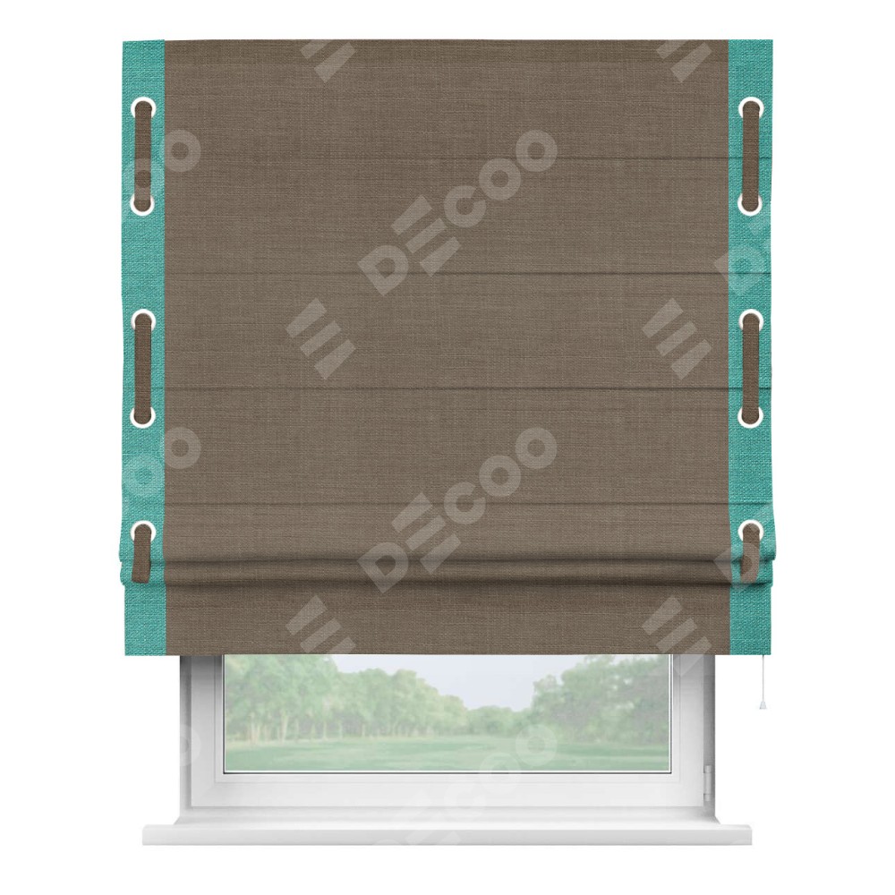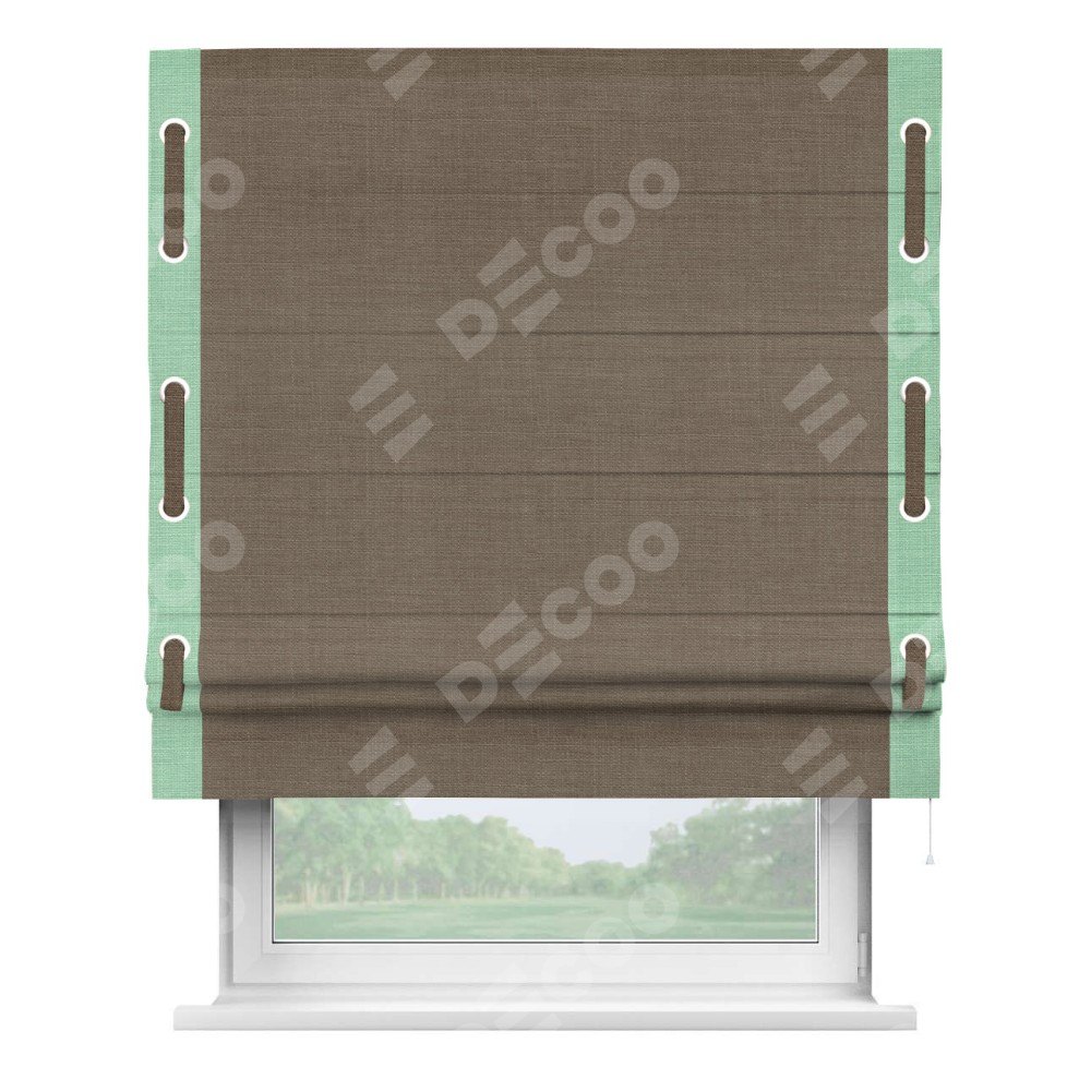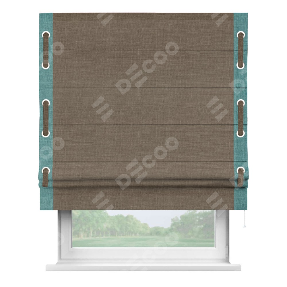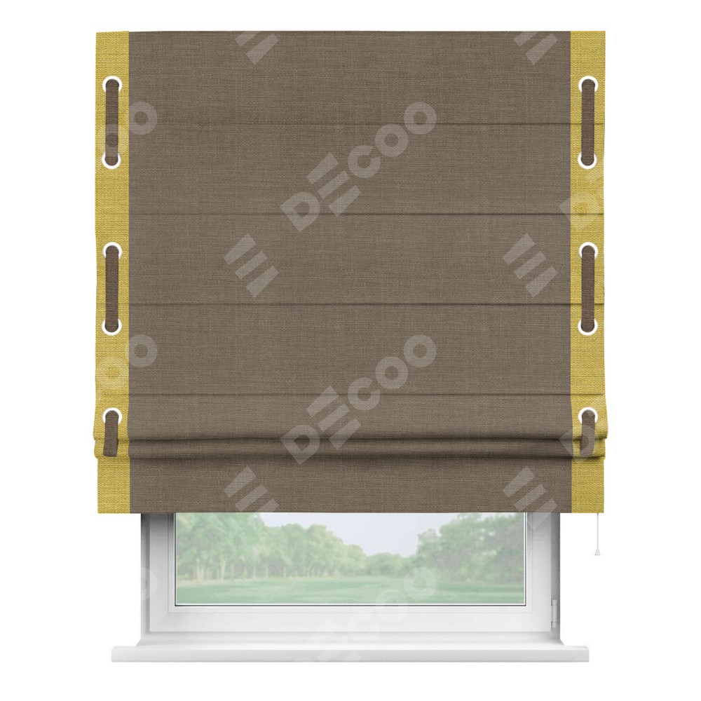 Римская штора «Кортин» с кантом Стрим Дуо (люверсы с пояском), для проема, ткань лён мокко