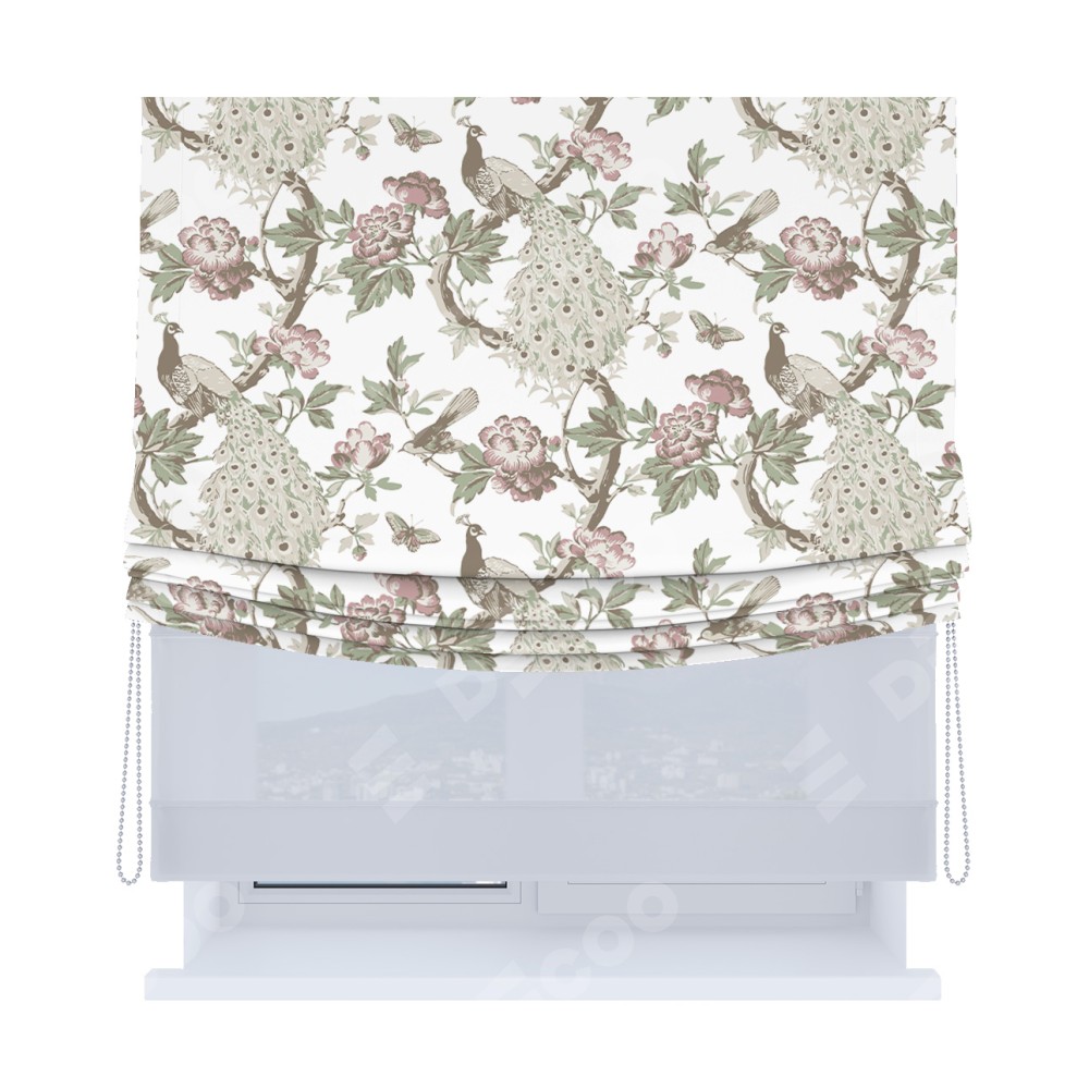 Римская штора «Кортин», день-ночь с мягкими складками, «Гордые павлины»