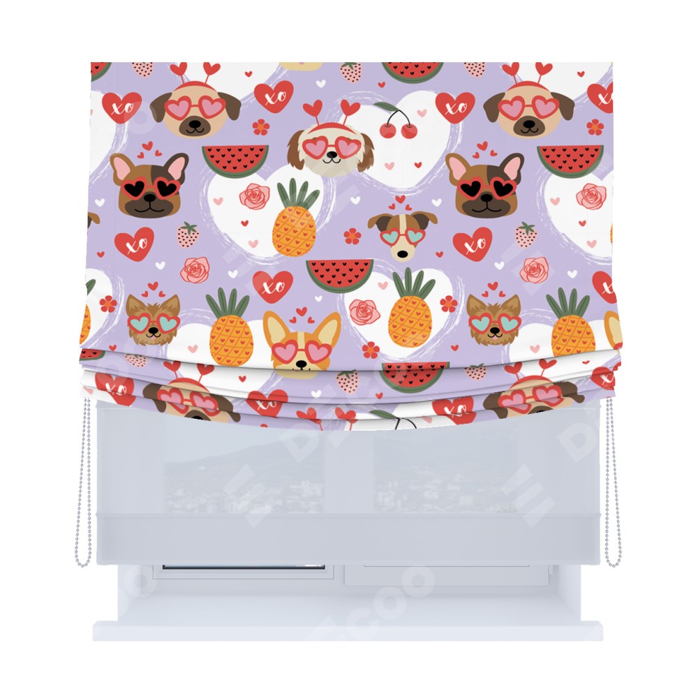Римская штора «Кортин», день-ночь с мягкими складками, «Забавные собачки»