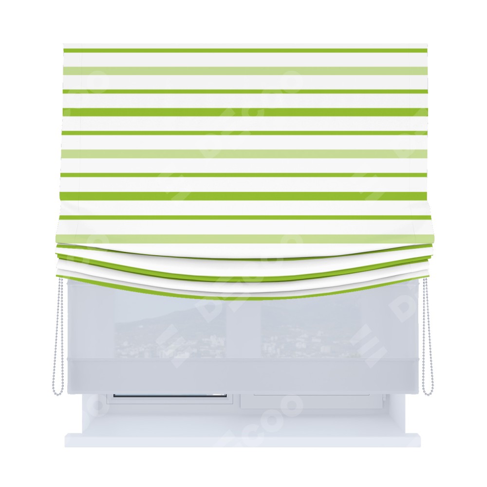 Римская штора «Кортин», день-ночь с мягкими складками, «Зелёные горизонтальные полоски»