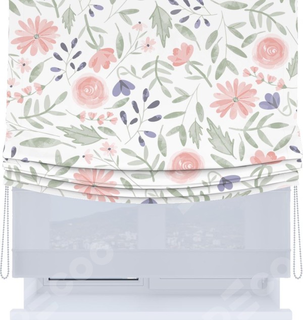 Основная ткань римской шторы не имеет горизонтальных вставок и нижнего отвеса. Это позволяет ткани произвольно драпироваться в свободные мягкие складки.