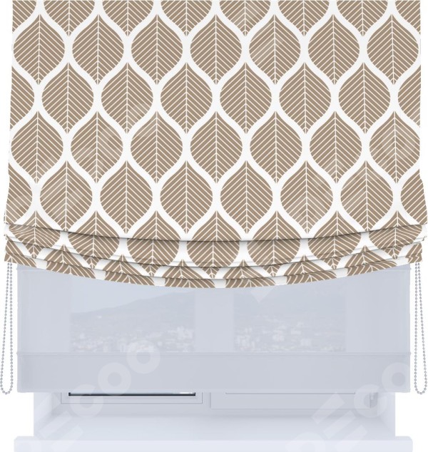 Римская штора «Кортин», день-ночь с мягкими складками, «Листья геометрия»
