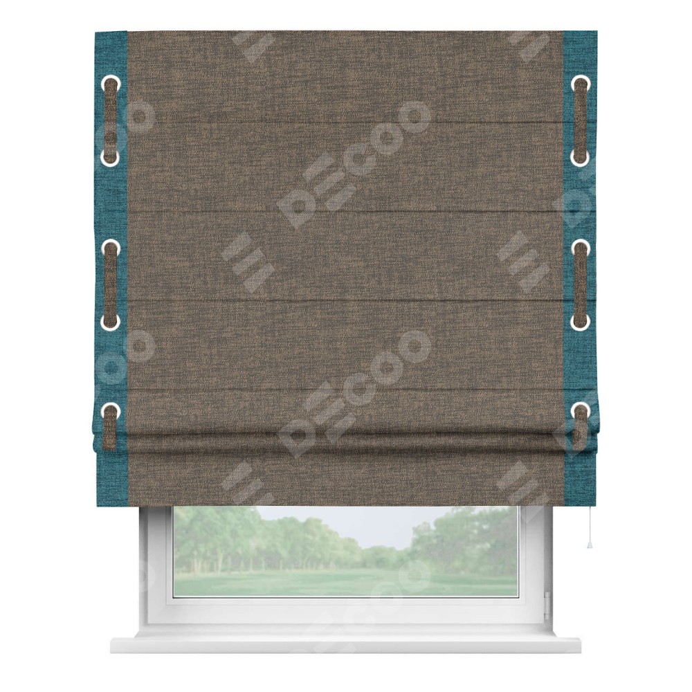 Римская штора «Кортин» с кантом Стрим Дуо (люверсы с пояском), для проема, ткань рогожка димаут, коричневый