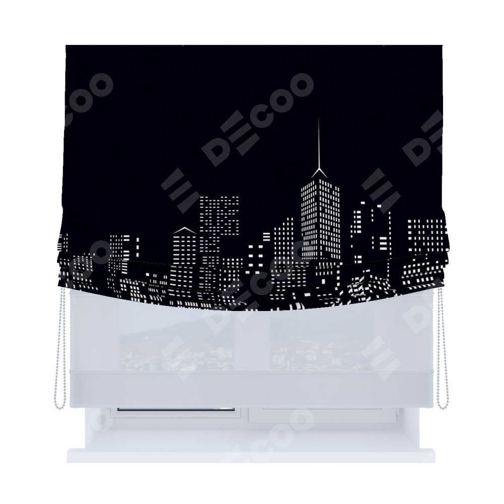 Римская штора «Кортин», день-ночь с мягкими складками, «Ночной город»