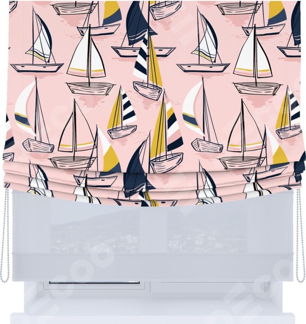 Римская штора «Кортин», день-ночь с мягкими складками, «Парусная регата»