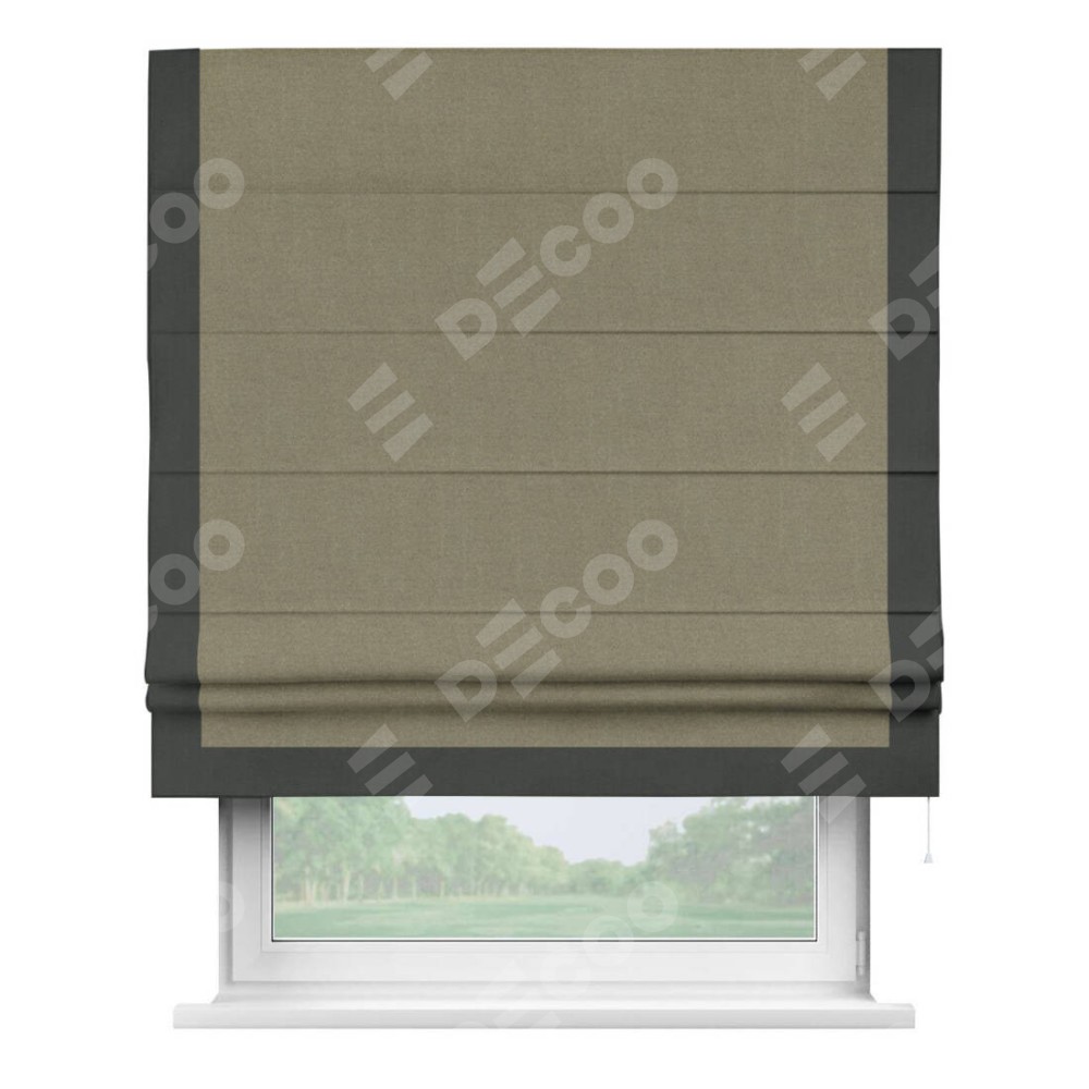 Римская штора производителя «Cortin», используется для проёма, пошита из ткани лён блэкаут бежевый, артикул 69435. Отделка шторы кантом «Виктория», ткань для канта используется из льна разной расцветки на выбор. Имеет универсальный механизм и подходит для монтажа: на потолок, на стену и в нишу.