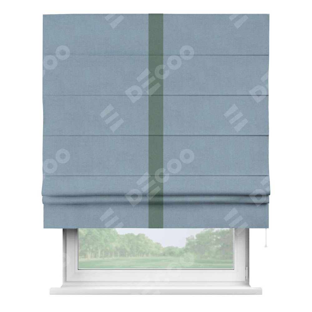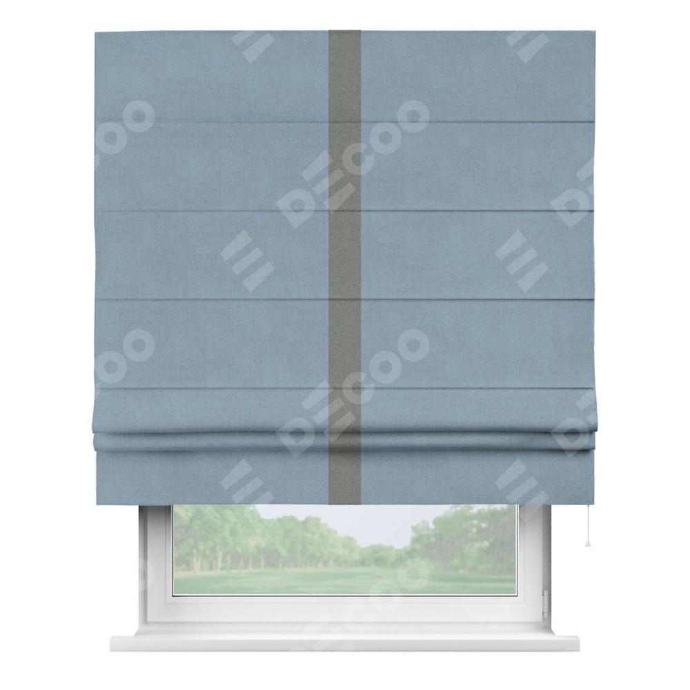 Римская штора «Кортин» с кантом Хайвэй, для проема, лён блэкаут голубой
