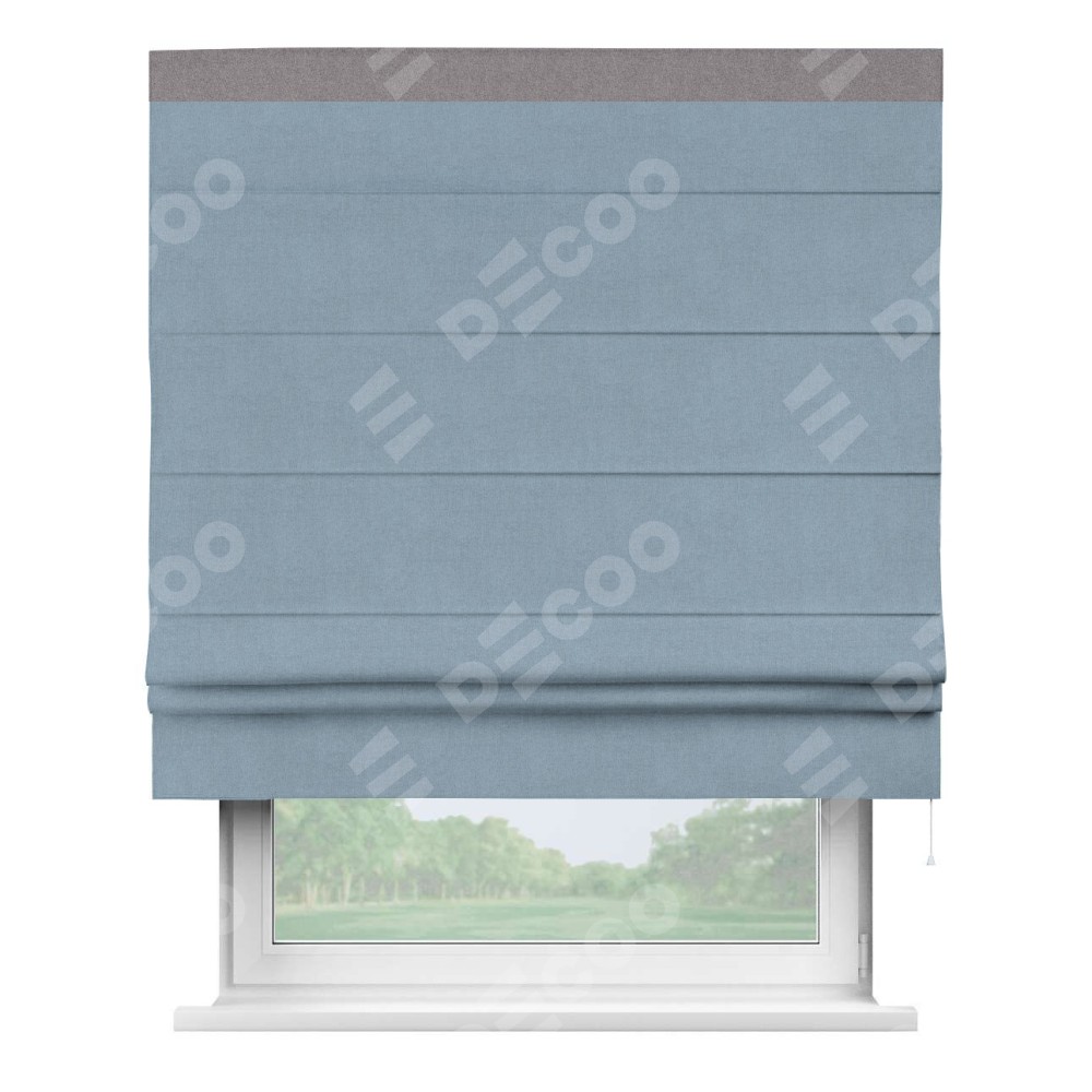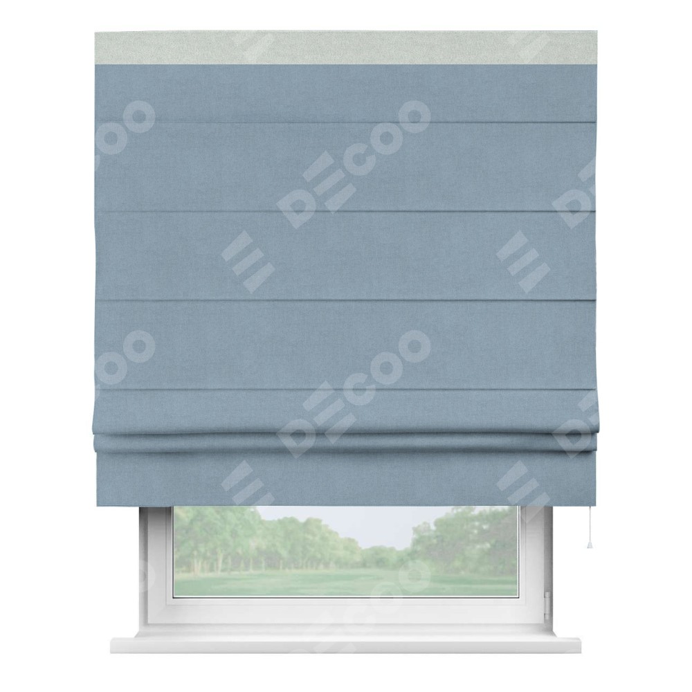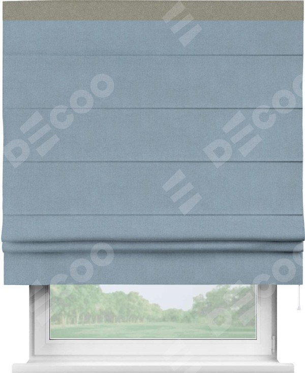 Римская штора «Кортин» с кантом Кинг, для проема, лён блэкаут голубой