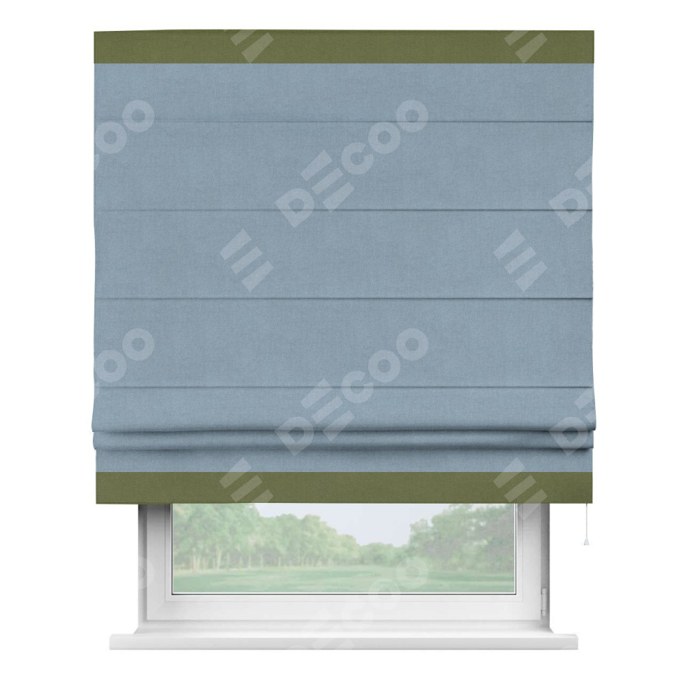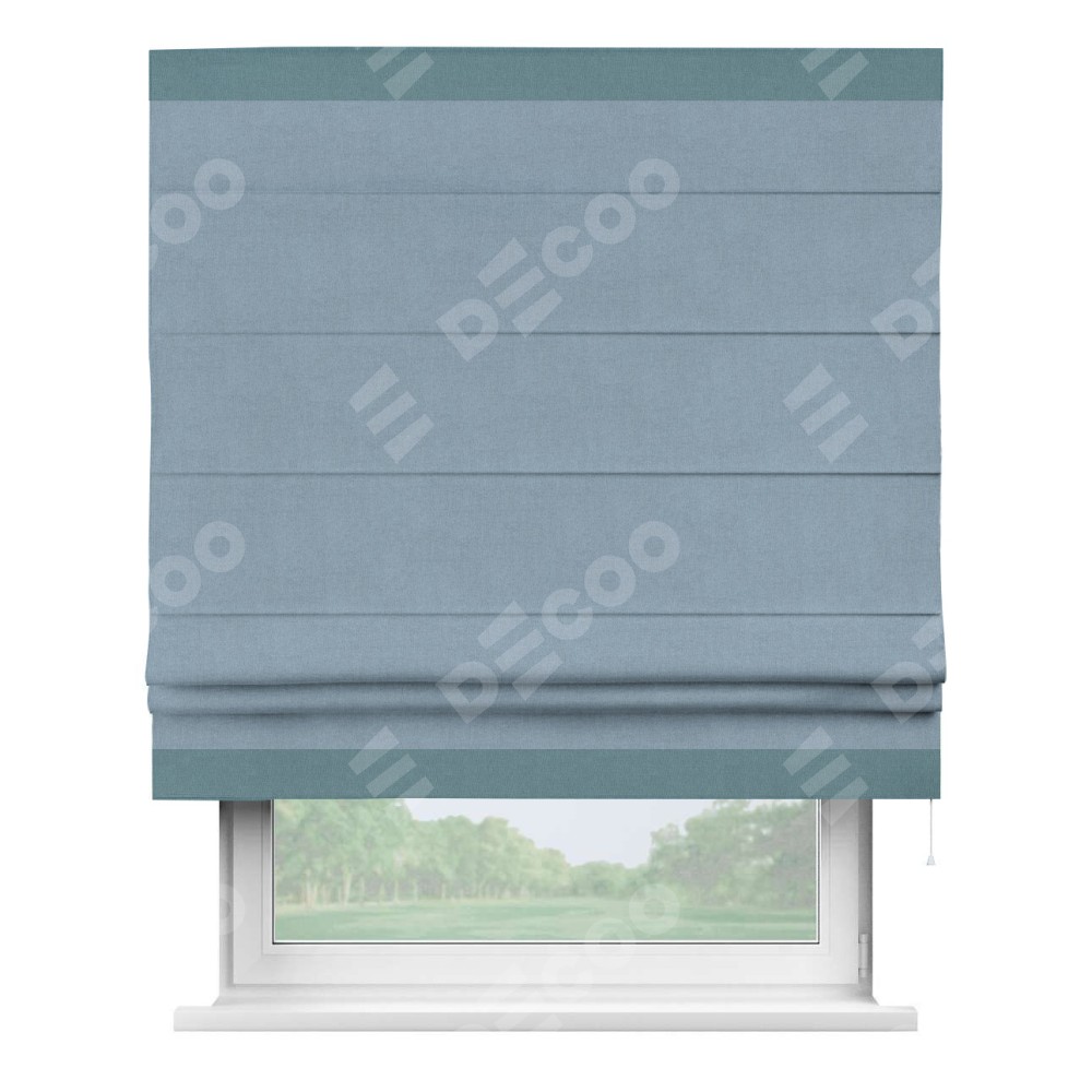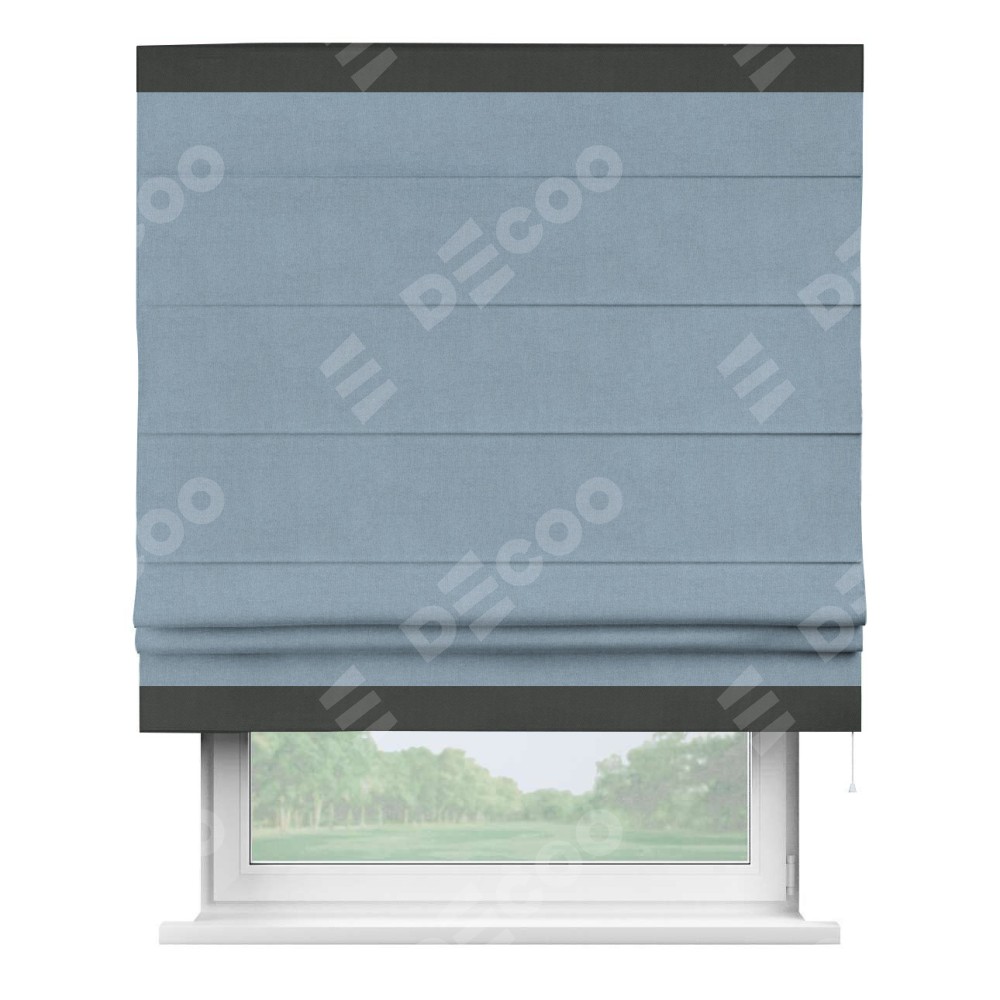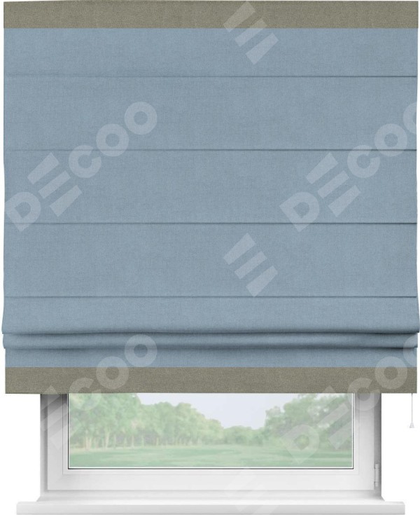 Римская штора «Кортин» с кантом Горизонт, для проема, лён блэкаут голубой