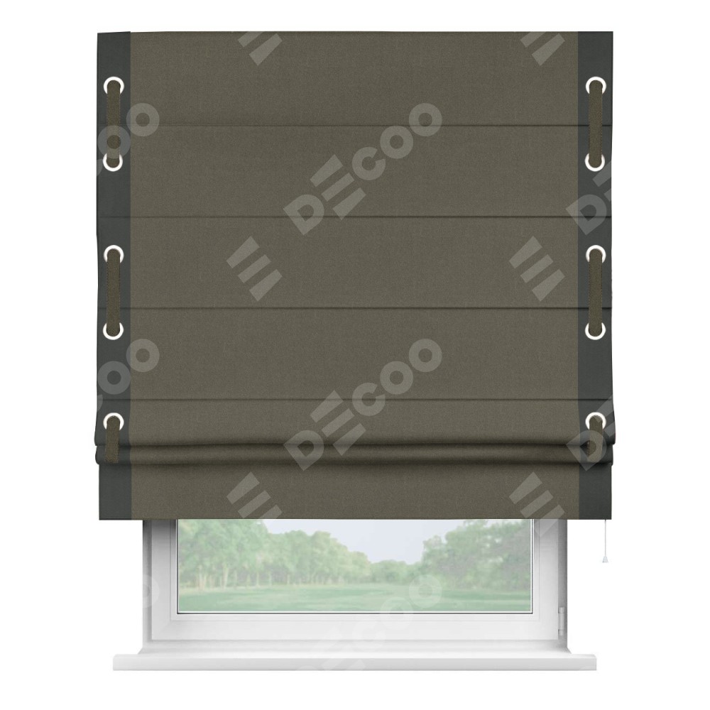 Римская штора «Кортин» с кантом Стрим Дуо (люверсы с пояском), для проема, лён блэкаут коричневый
