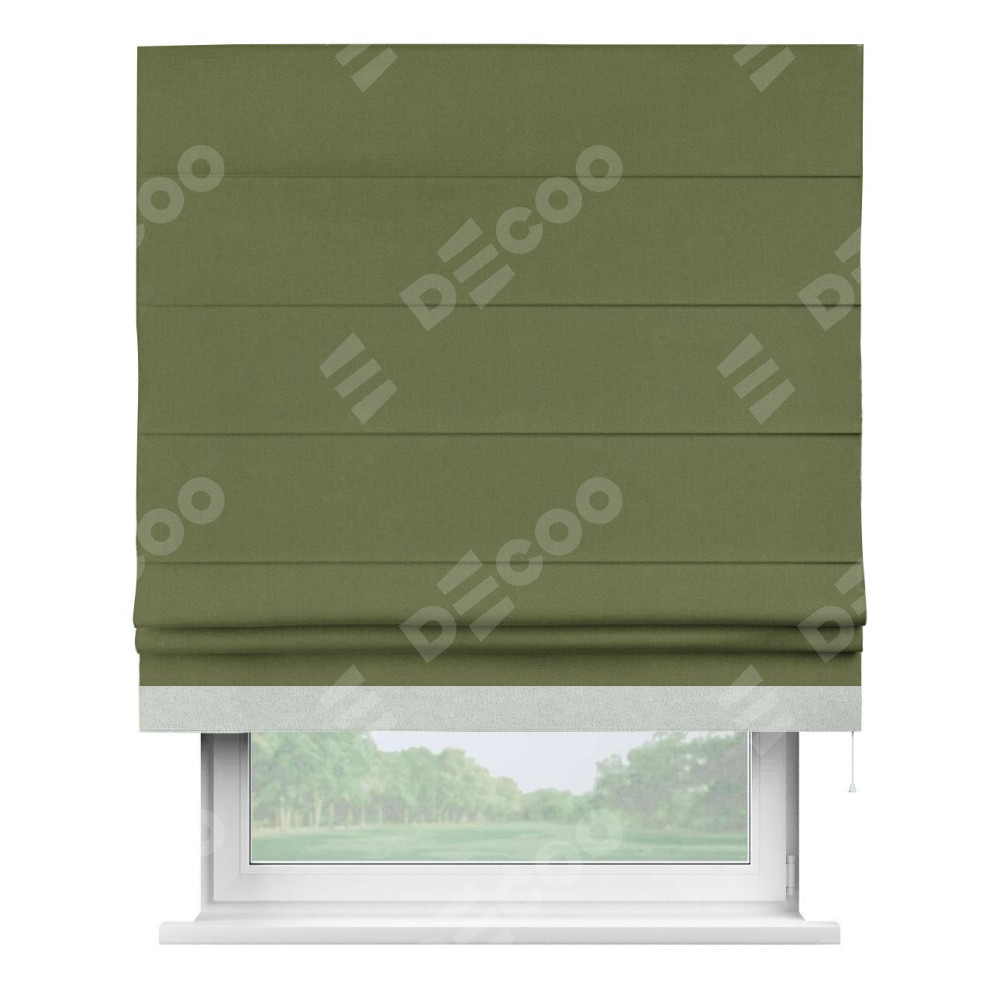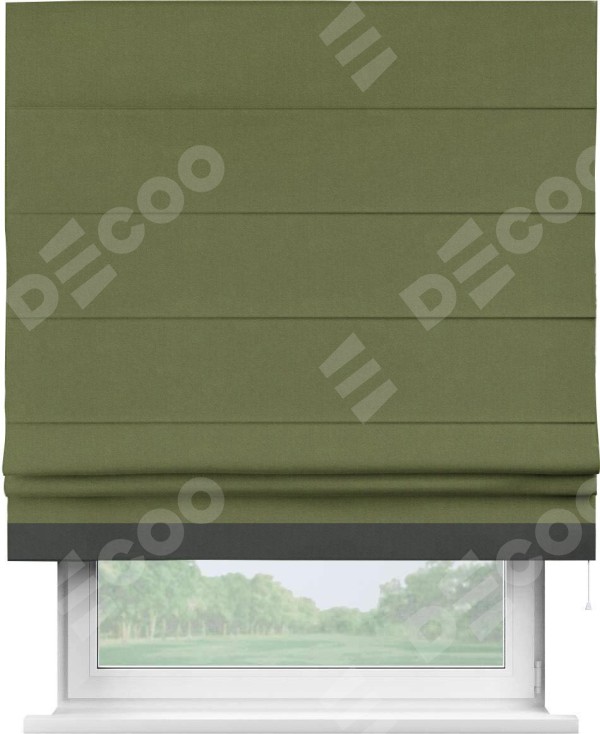 Римская штора «Кортин» с кантом Джестер, для проема, лён блэкаут оливковый
