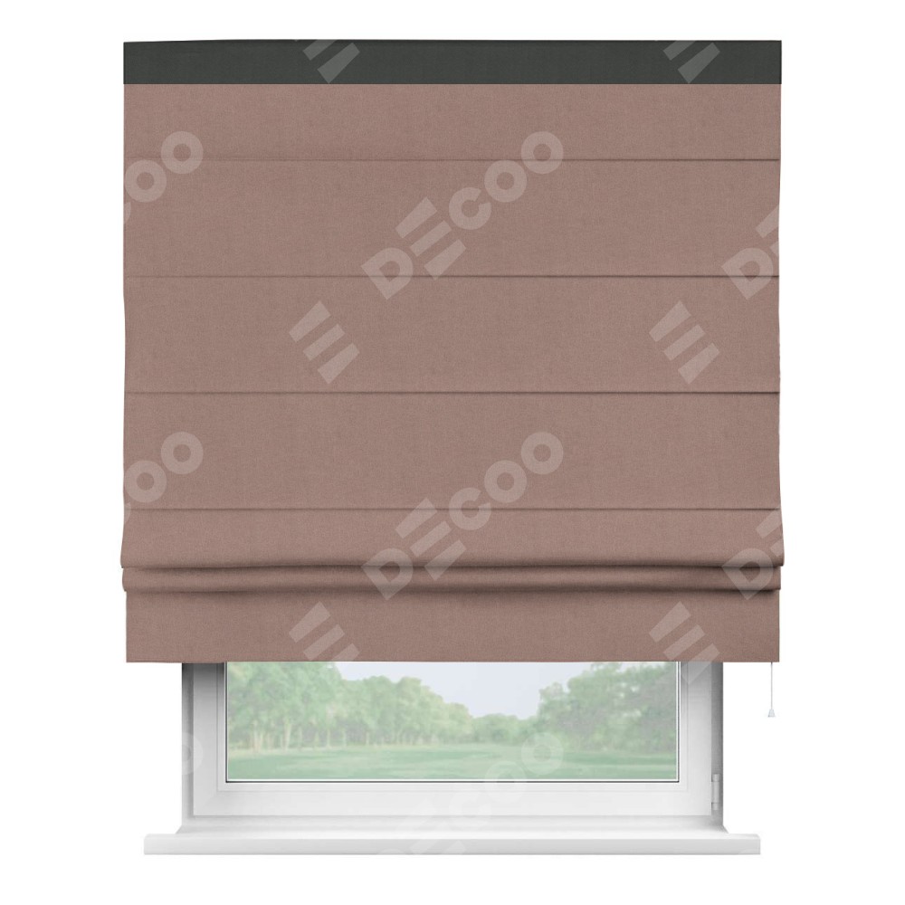 Римская штора производителя «Cortin», используется для проёма, пошита из ткани лён блэкаут розовый, артикул 69575. Отделка шторы кантом «Кинг», ткань для канта используется из льна разной расцветки на выбор. Имеет универсальный механизм и подходит для монтажа: на потолок, на стену и в нишу.