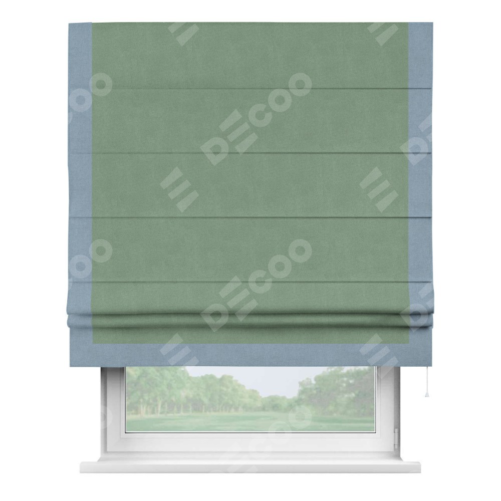 Римская штора «Кортин» с кантом Виктория, для проема, лён блэкаут светло-бирюзовый