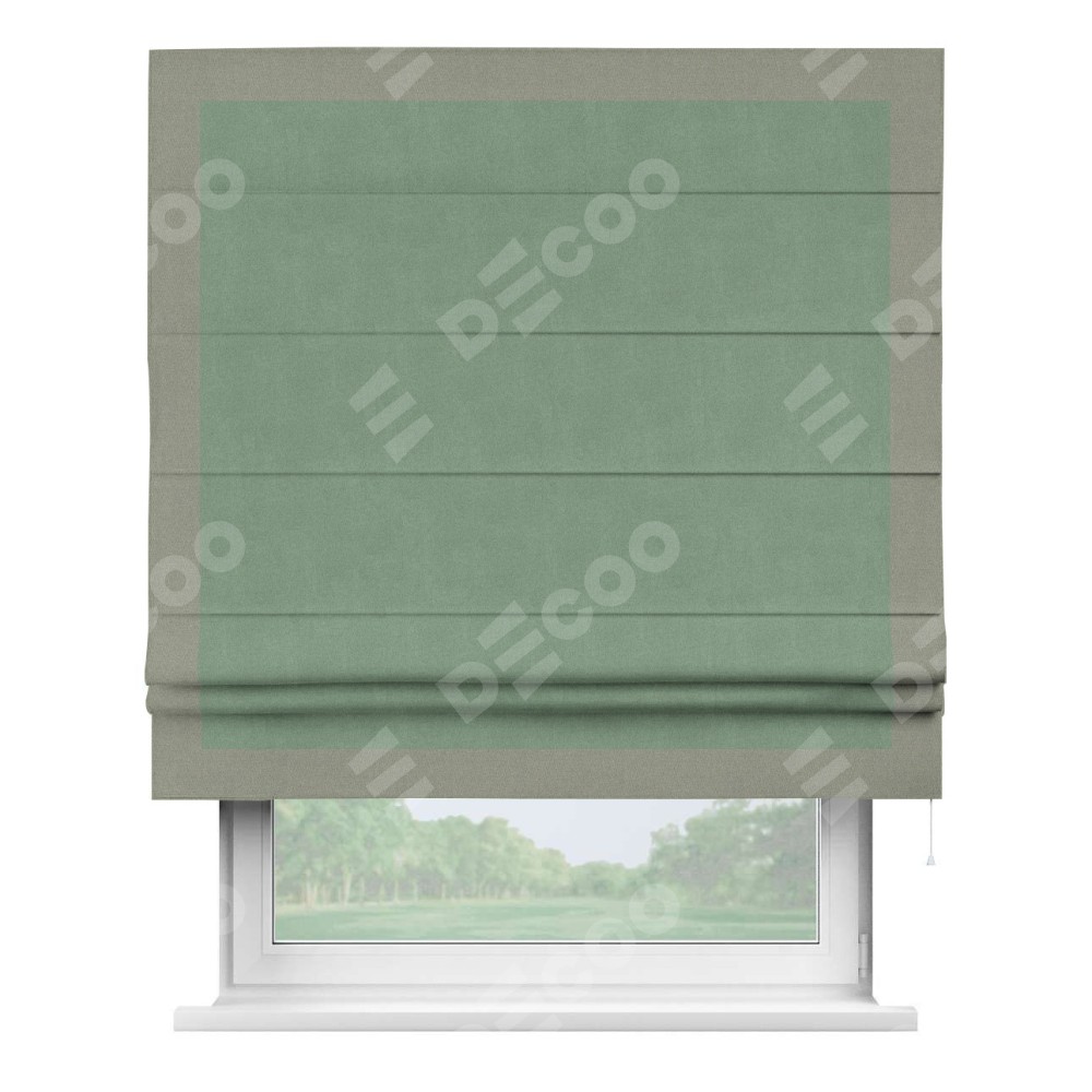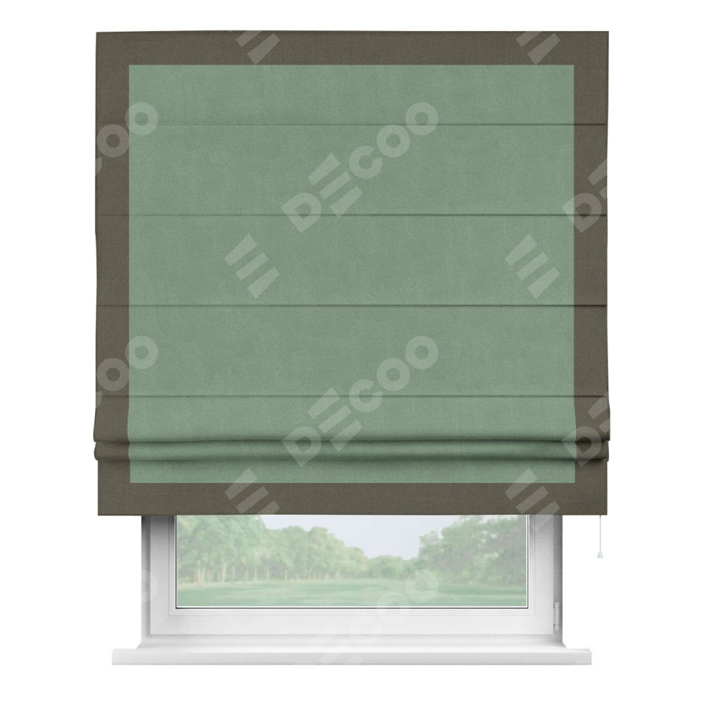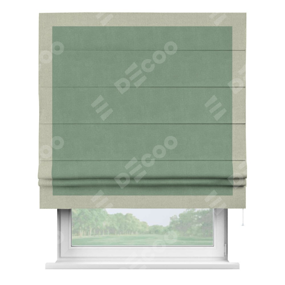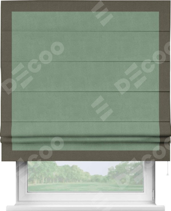 Римская штора «Кортин» с кантом Чесс, для проема, лён блэкаут светло-бирюзовый