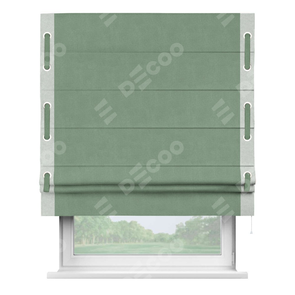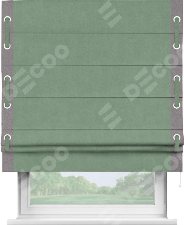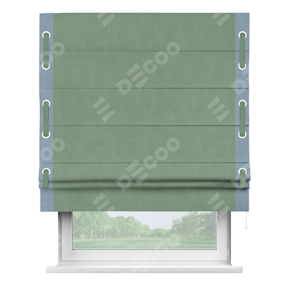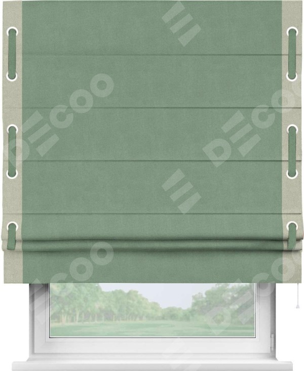 Римская штора «Кортин» с кантом Стрим Дуо (люверсы с пояском), для проема, лён блэкаут светло-бирюзовый