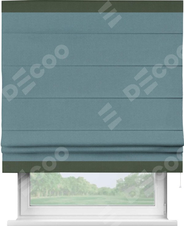 Римская штора «Кортин» с кантом Горизонт, для проема, лён блэкаут синий