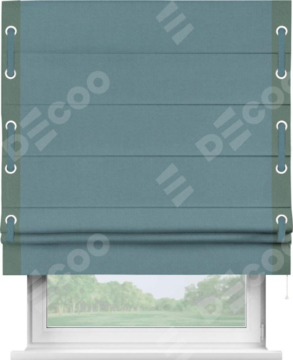 Римская штора «Кортин» с кантом Стрим Дуо (люверсы с пояском), для проема, лён блэкаут синий
