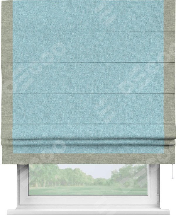 Римская штора «Кортин» с кантом Виктория, для проема, ткань лён кашемир голубой