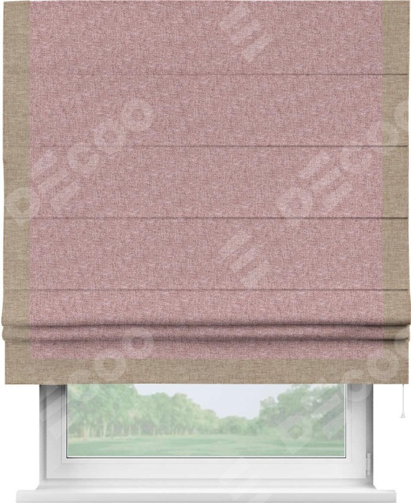 Римская штора «Кортин» с кантом Виктория, для проема, ткань лён кашемир розовая пудра