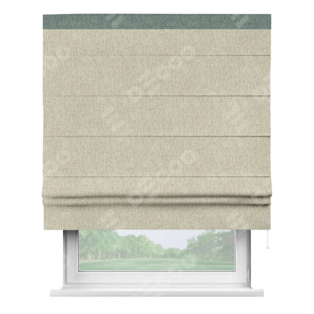 Римская штора производителя «Cortin», используется для проёма, пошита из ткани стиф димаут светло-бежевый, артикул 18084. Отделка шторы кантом «Кинг», ткань для канта используется из стифа разной расцветки на выбор. Имеет универсальный механизм и подходит для монтажа: на потолок, на стену и в нишу.
