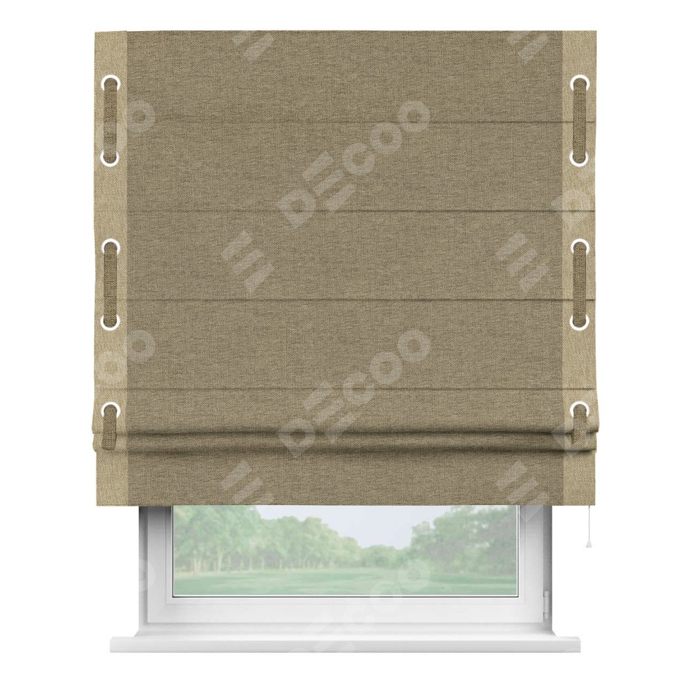 Римская штора «Кортин» с кантом Стрим Дуо (люверсы с пояском), для проема, ткань стиф димаут тёмно-бежевый