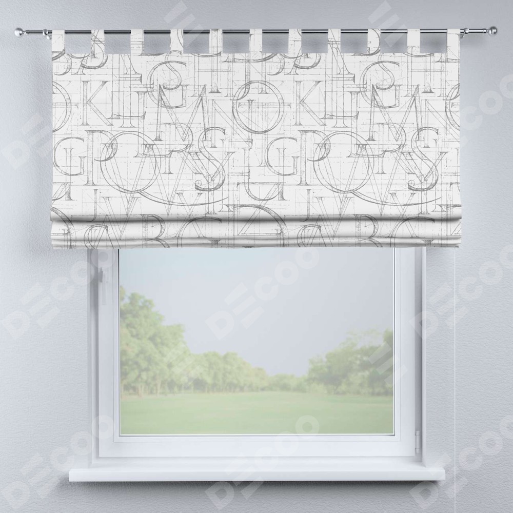 Римская штора производителя «Cortin», используется для проёма, пошита из ткани блэкаут с нанесением сублимационной печати «Античные буквы». Данная модель пошита на петлях, комплектуется на выбор круглым карнизом и подходит для монтажа на стену. Римская штора на петлях имеет простую систему регулировки высоты, отличительным преимуществом данной модели является простой способ монтажа. Достаточно повесить ее на трубу и штора готова!