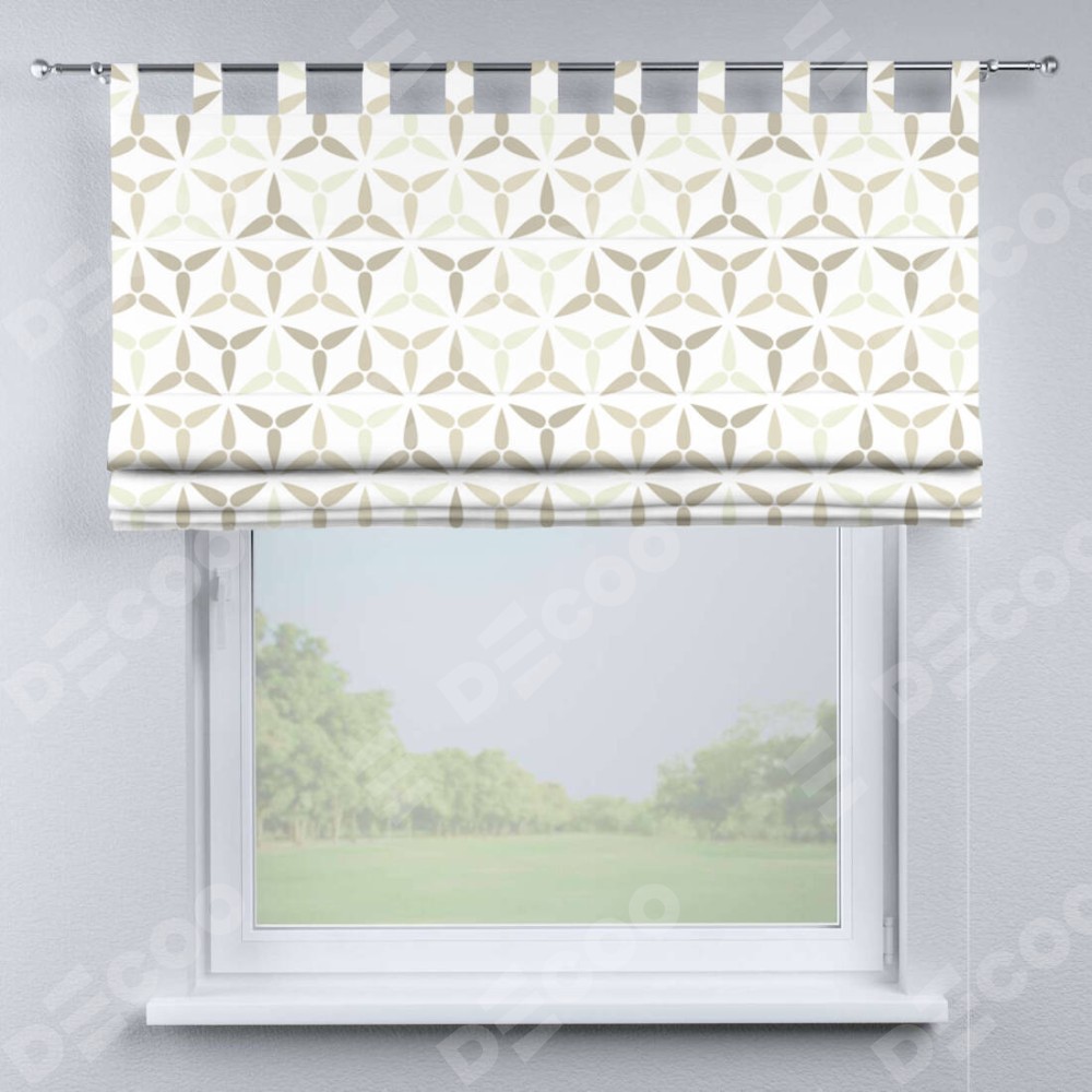 Римская штора производителя «Cortin», используется для проёма, пошита из ткани блэкаут с нанесением сублимационной печати «Бежевая графика». Данная модель пошита на петлях, комплектуется на выбор круглым карнизом и подходит для монтажа на стену. Римская штора на петлях имеет простую систему регулировки высоты, отличительным преимуществом данной модели является простой способ монтажа. Достаточно повесить ее на трубу и штора готова!