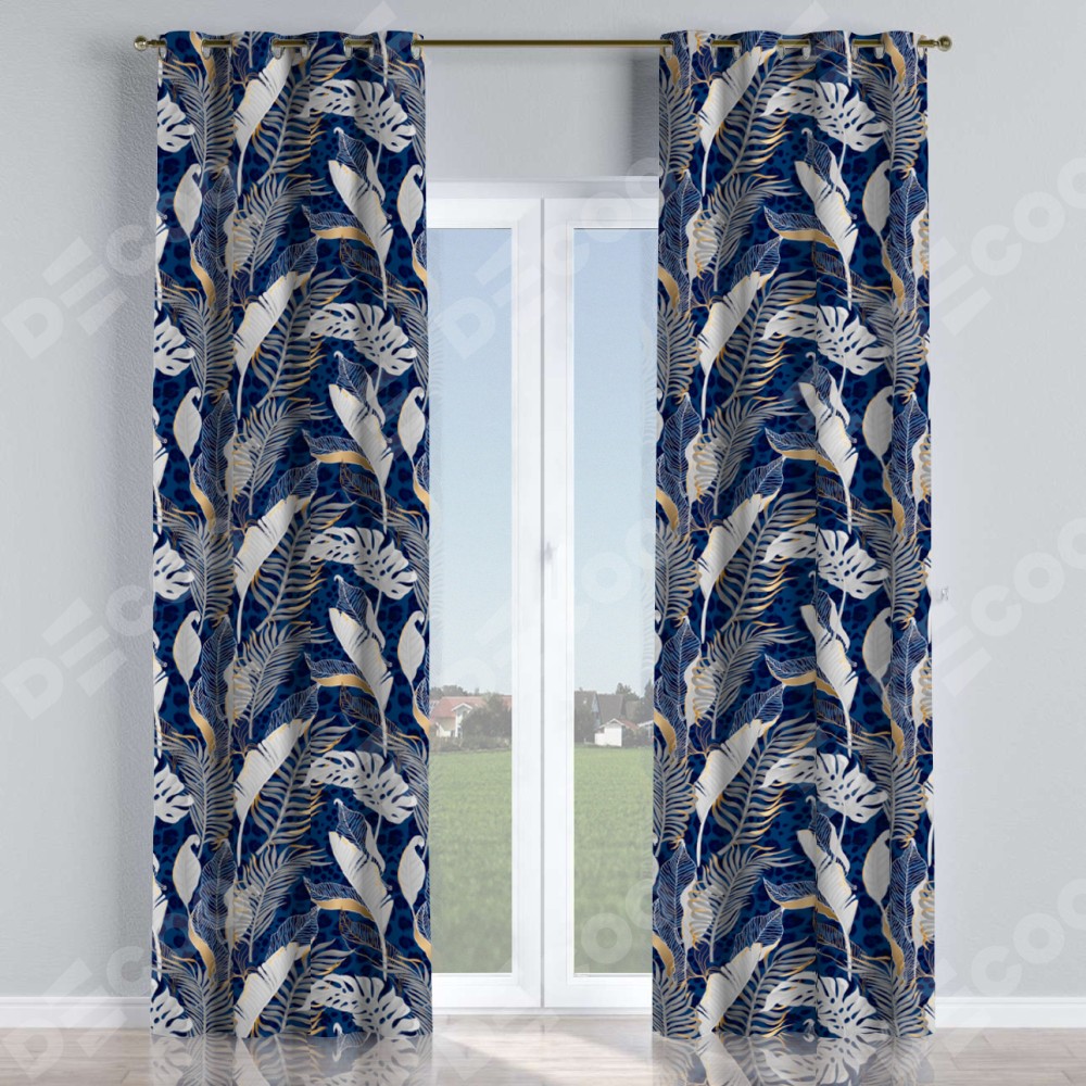 Комплект прямых штор, от производителя «Cortin», пошиты из ткани блэкаут с нанесением сублимационной печати «Сине-золотые джунгли». Данная модель пошита на люверсах, комплектуется на выбор круглым карнизом и подходит для монтажа на стену или потолок. Прямые шторы на люверсах шьются по стандарту с коэффициентом 1/2 (на 100 см. ширины проёма 200 см. ширины ткани), отличительным преимуществом данной модели является простой способ монтажа. Достаточно повесить ее на трубу и штора готова!