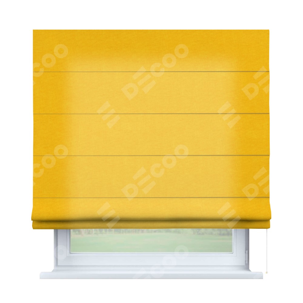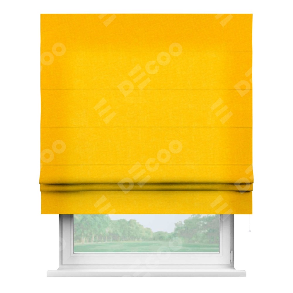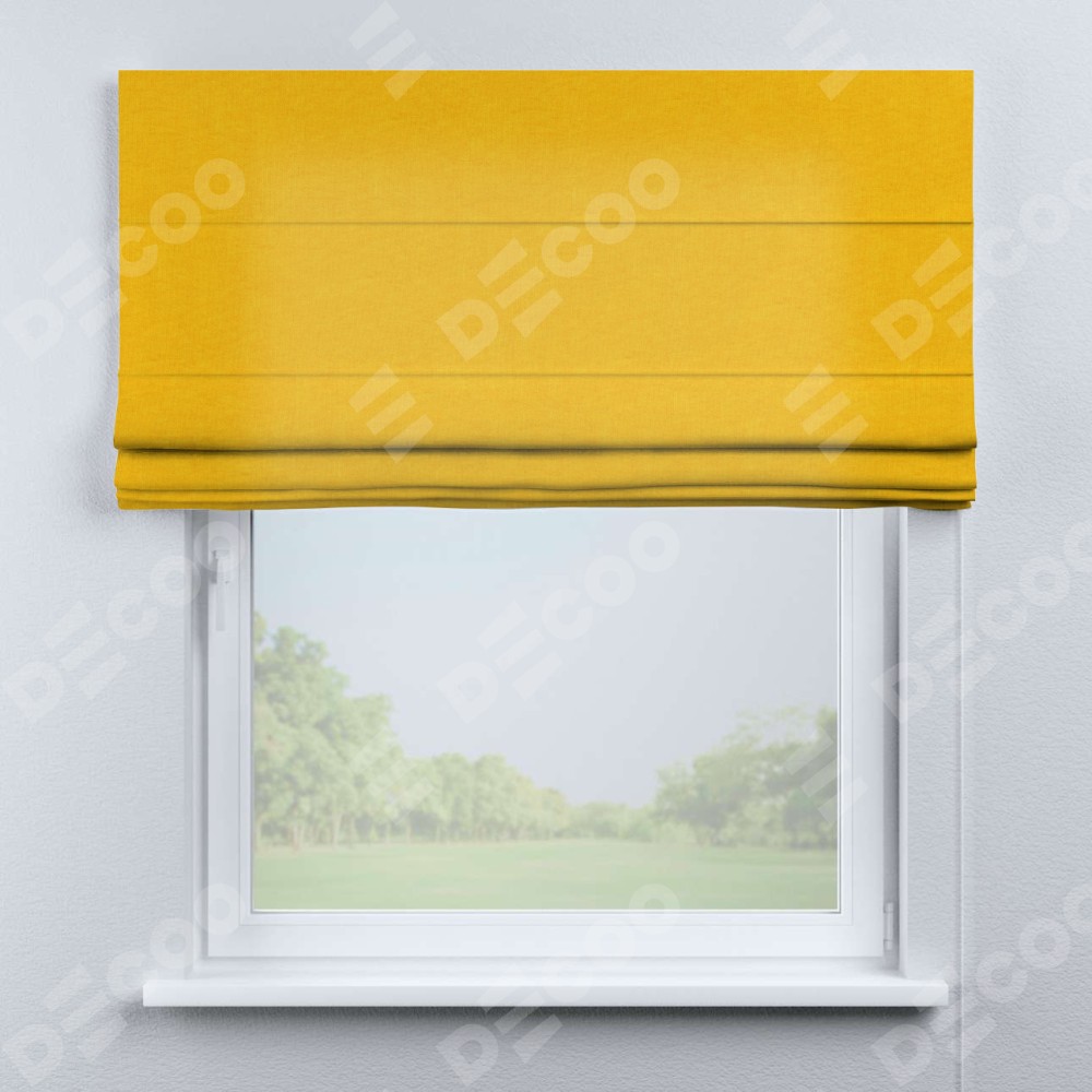 Римская штора производителя «Cortin», используется для проёма, пошита из ткани канвас желтый, артикул ткани v-344. Имеет универсальный механизм и подходит для монтажа: на потолок, на стену и в нишу.