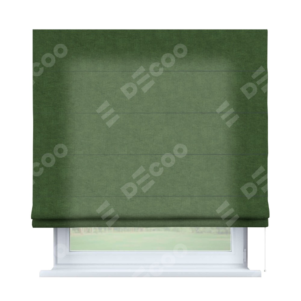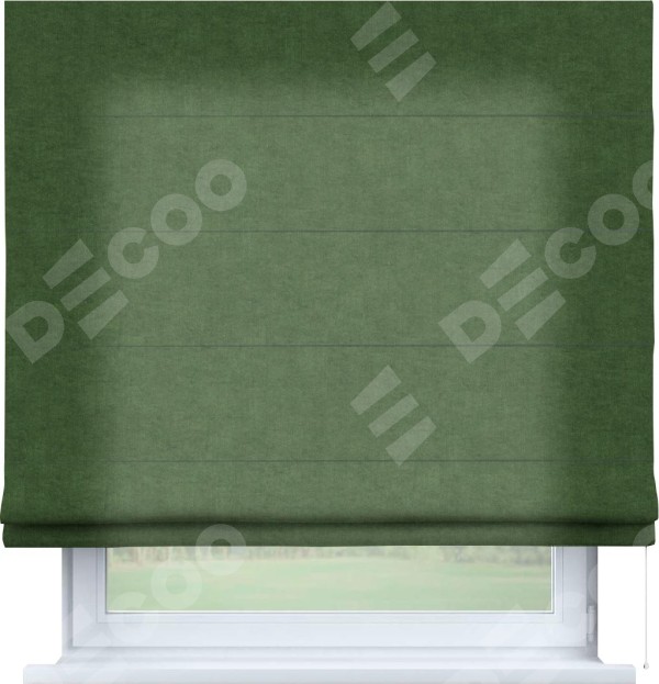 Римская штора производителя «Cortin», используется для проёма, пошита из ткани канвас зелёный, артикул ткани v-16. Имеет универсальный механизм и подходит для монтажа: на потолок, на стену и в нишу.