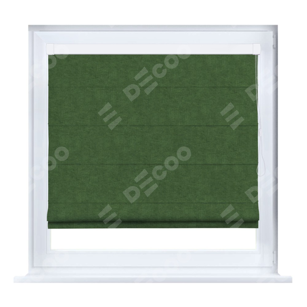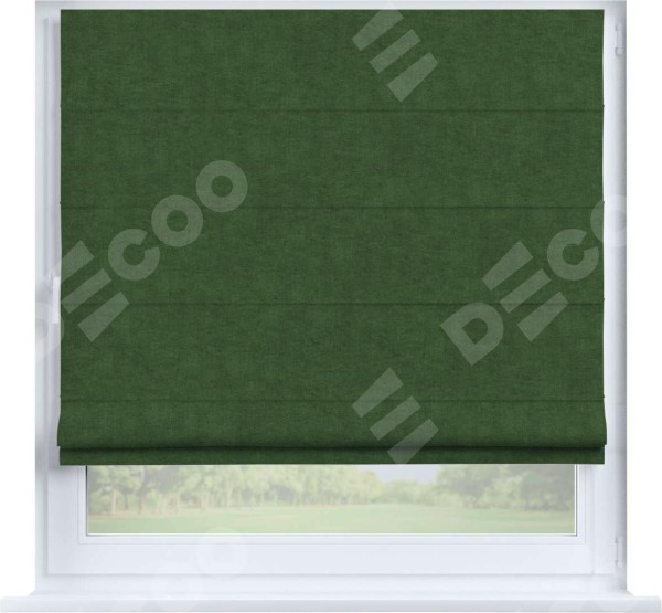 Римская штора производителя «Cortin», устанавливается на створку окна, пошита из ткани канвас зелёный, артикул v-16. Штора шьётся по индивидуальным размерам, для данного типа римской шторы возможная ширина от 35 до 150 см., высота до 250 см.