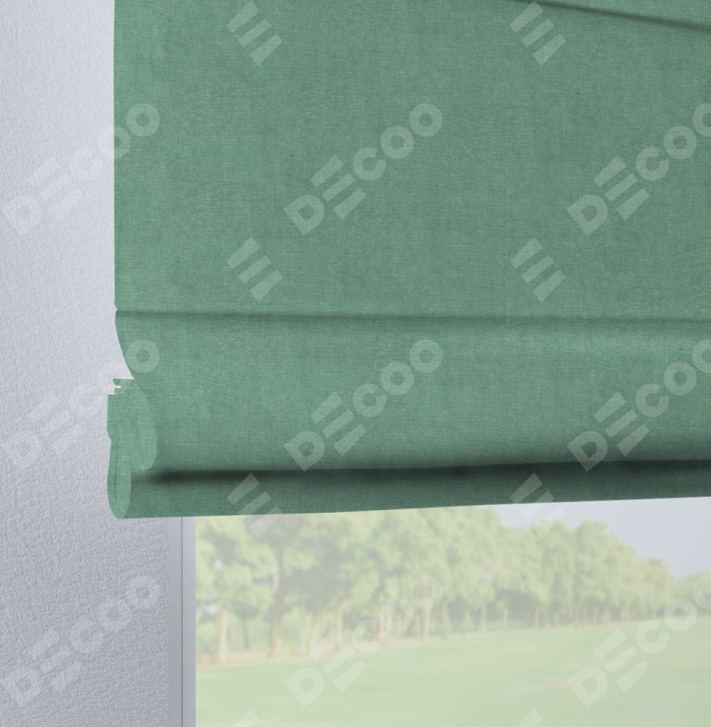 Римская штора производителя «Cortin», используется для проёма, пошита из ткани канвас мятный, артикул ткани v-248. Данная модель пошита на петлях, комплектуется на выбор круглым карнизом и подходит для монтажа на стену. Римская штора на петлях имеет простую систему регулировки высоты, отличительным преимуществом данной модели является простой способ монтажа. Достаточно повесить ее на трубу и штора готова!