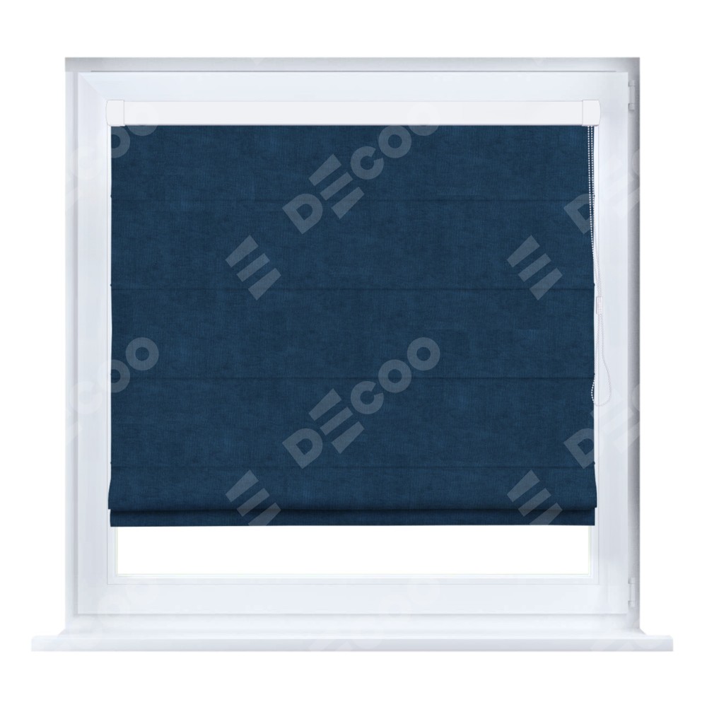 Римская штора производителя «Cortin», устанавливается на створку окна, пошита из ткани канвас синий, артикул v-573. Штора шьётся по индивидуальным размерам, для данного типа римской шторы возможная ширина от 35 до 150 см., высота до 250 см.