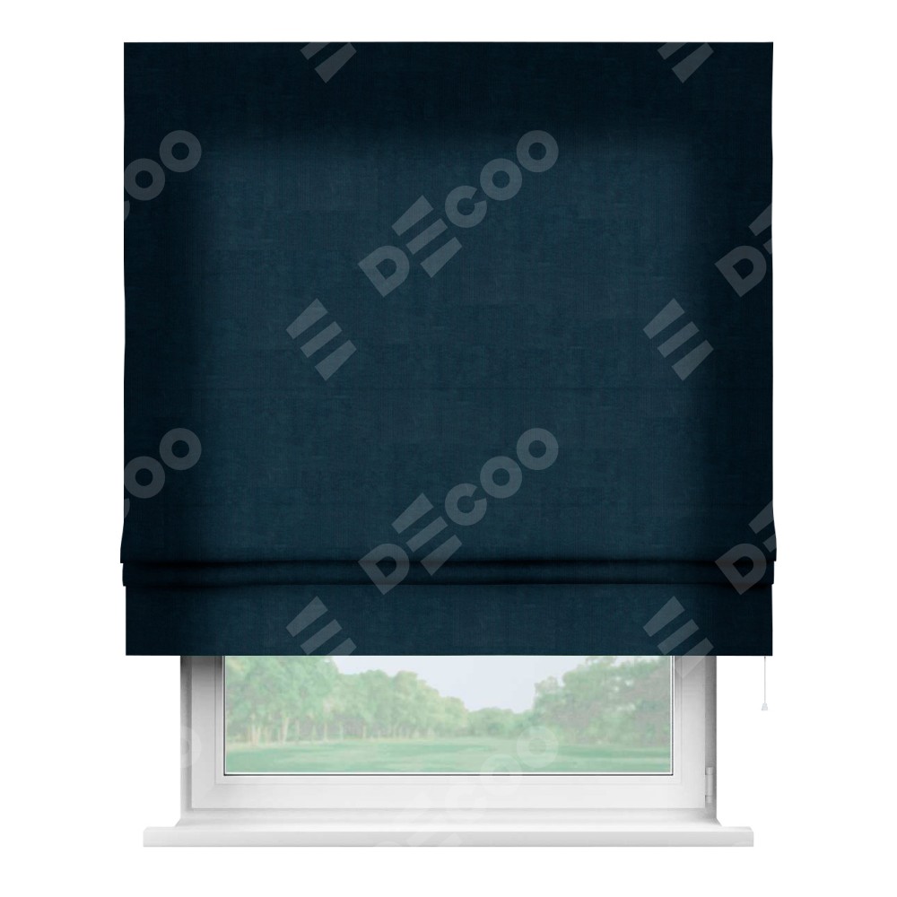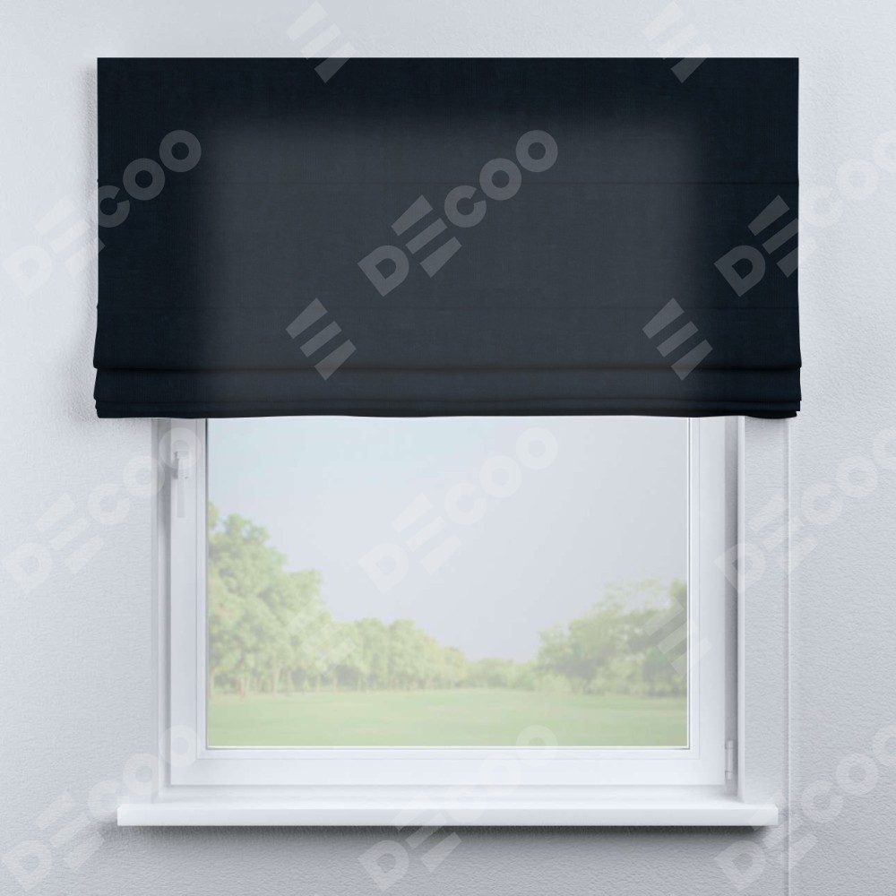 Римская штора производителя «Cortin», используется для проёма, пошита из ткани канвас тёмно-синий, артикул ткани v-206. Имеет универсальный механизм и подходит для монтажа: на потолок, на стену и в нишу.