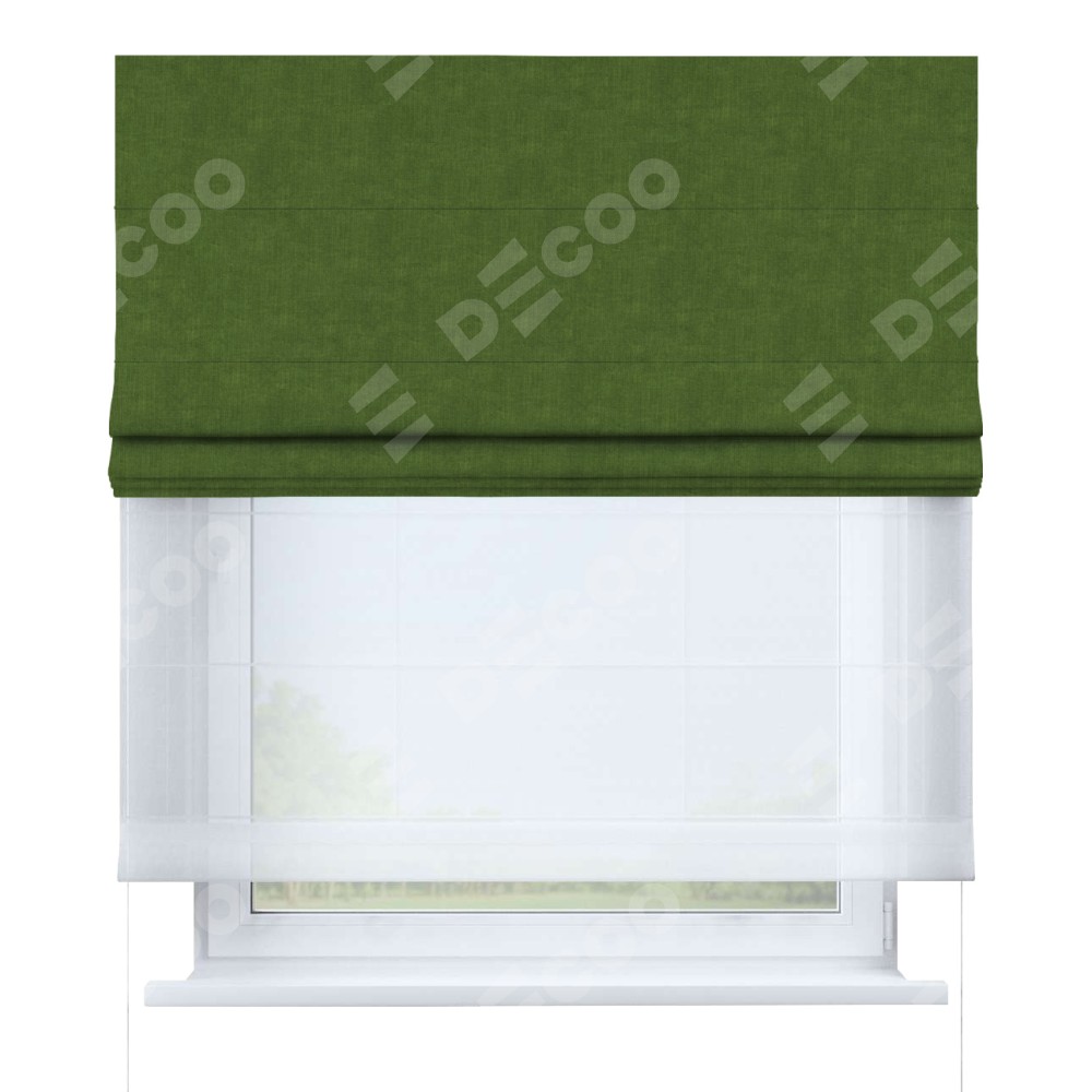 Римская штора день-ночь производителя «Cortin», используется для проёма, пошита из двух полотен, с лицевой стороны канвас трава артикул v-473, вторая ткань тюль (по стандарту комплектуется тюль белого цвета артикул V-01). Имеет универсальный механизм и подходит для монтажа: на потолок, на стену и в нишу.